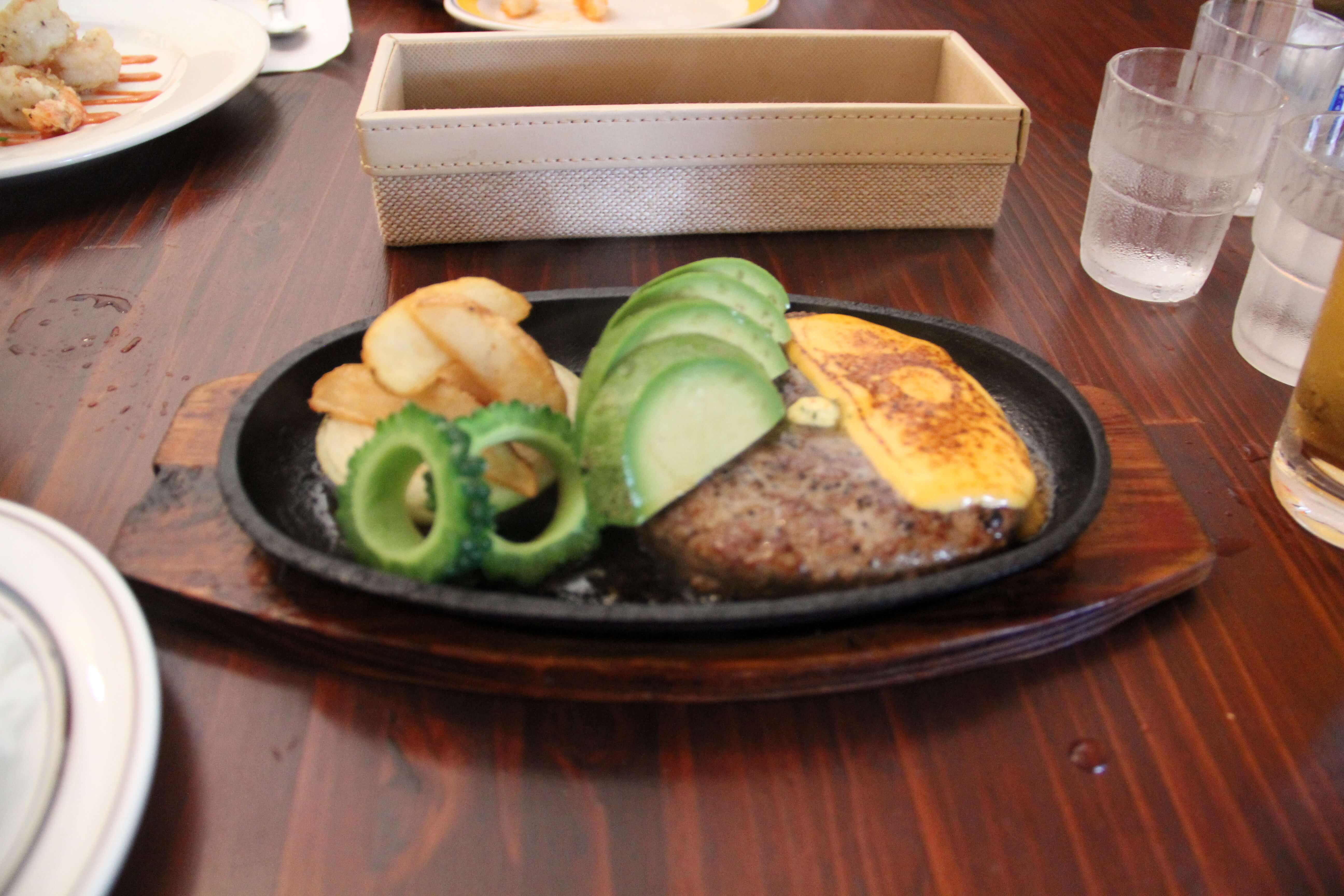 離島ターミナルから歩いて5分程度で便利です。僕はアボガドチーズハンバーグを食べました。写真はピンボケですが肉汁たっぷりでジューシーで美味しいです。