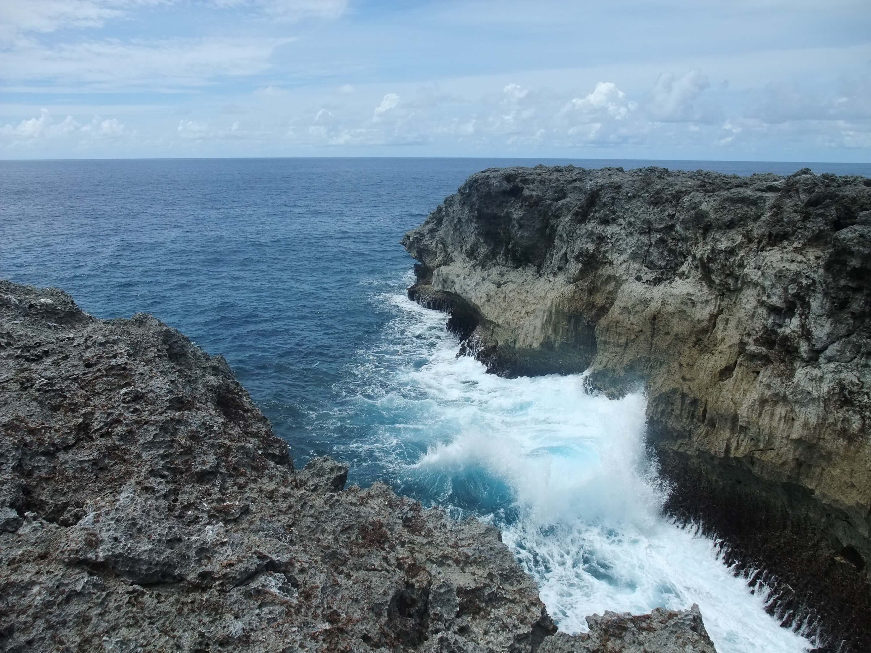 下の写真は南端の高那崎の海ですが、北西部のニシ浜の綺麗な海と対照的に南側の海は荒々しい感じです。