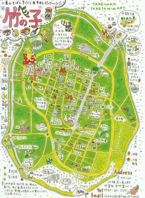 八重山そばの老舗です。オリジナルの手作り香辛料ピィヤーシとの相性もよく、シンプルながらとても美味しいです。ここの可愛らしいオリジナルの地図を持って観光するのがいいでしょう!