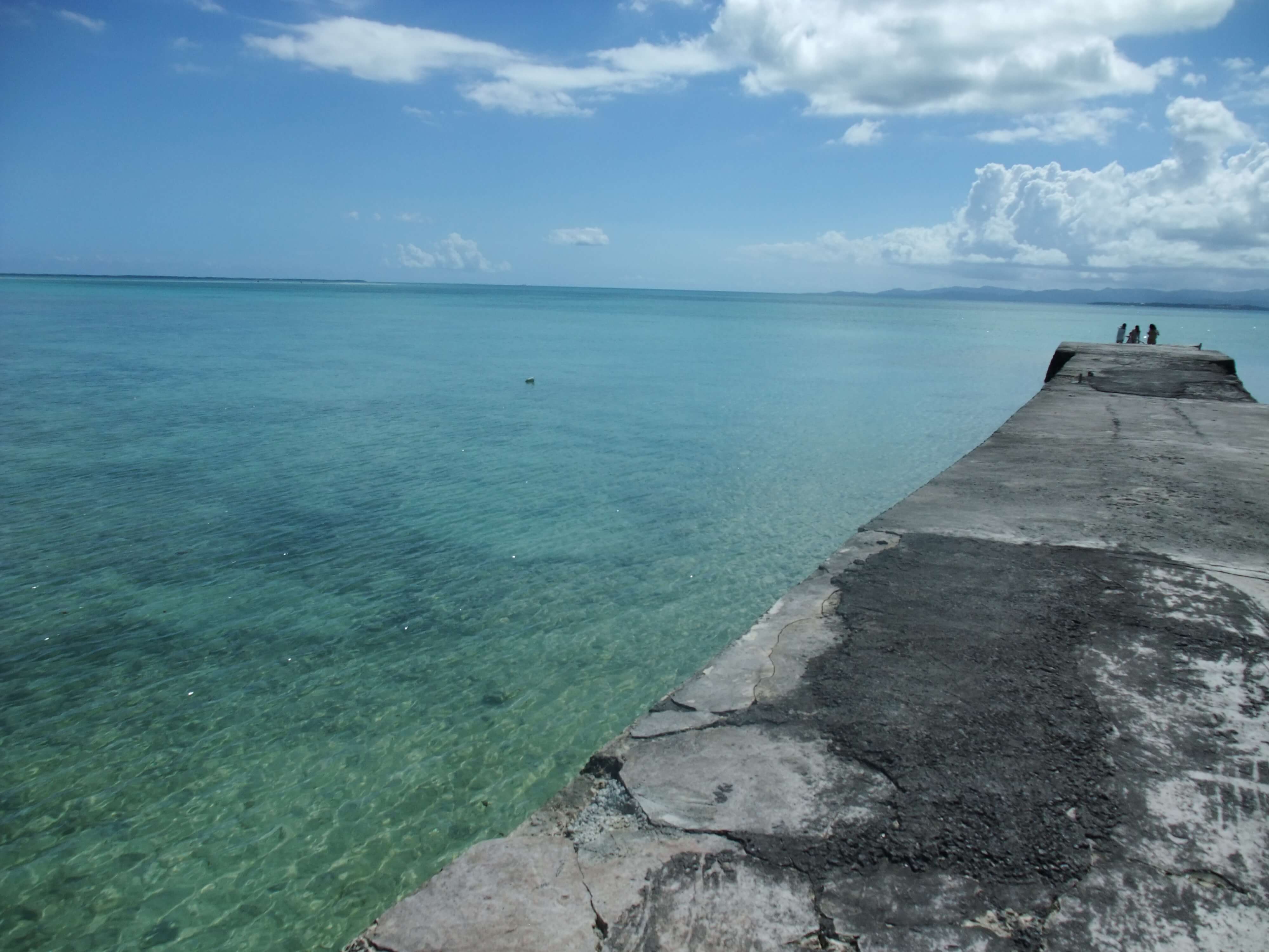 桟橋と言っても今は使われていません。夕日の名所です。日中は人もまばらですが、夕日の時間になると島に泊まっている人々が集まり賑わいます。2005年に国の有形文化財に登録されました。