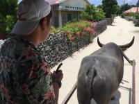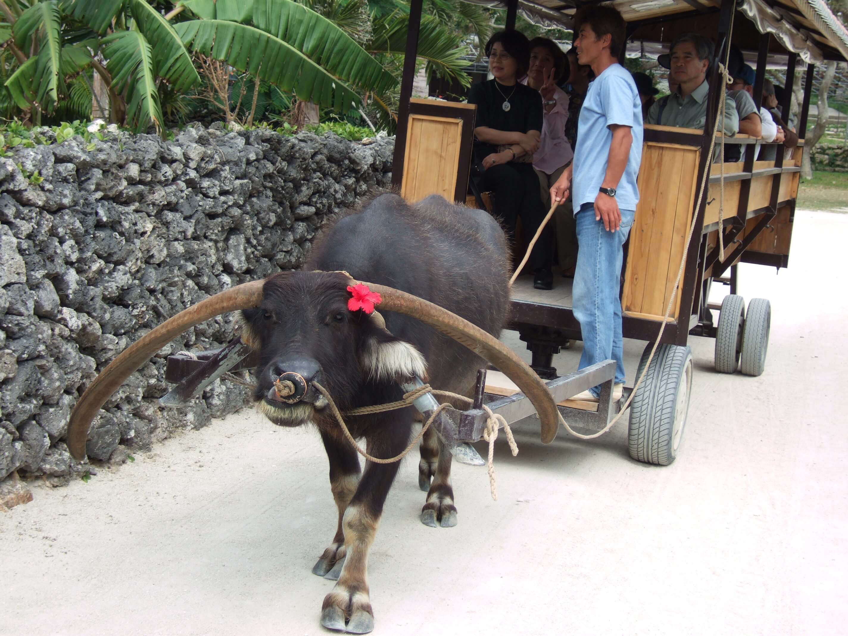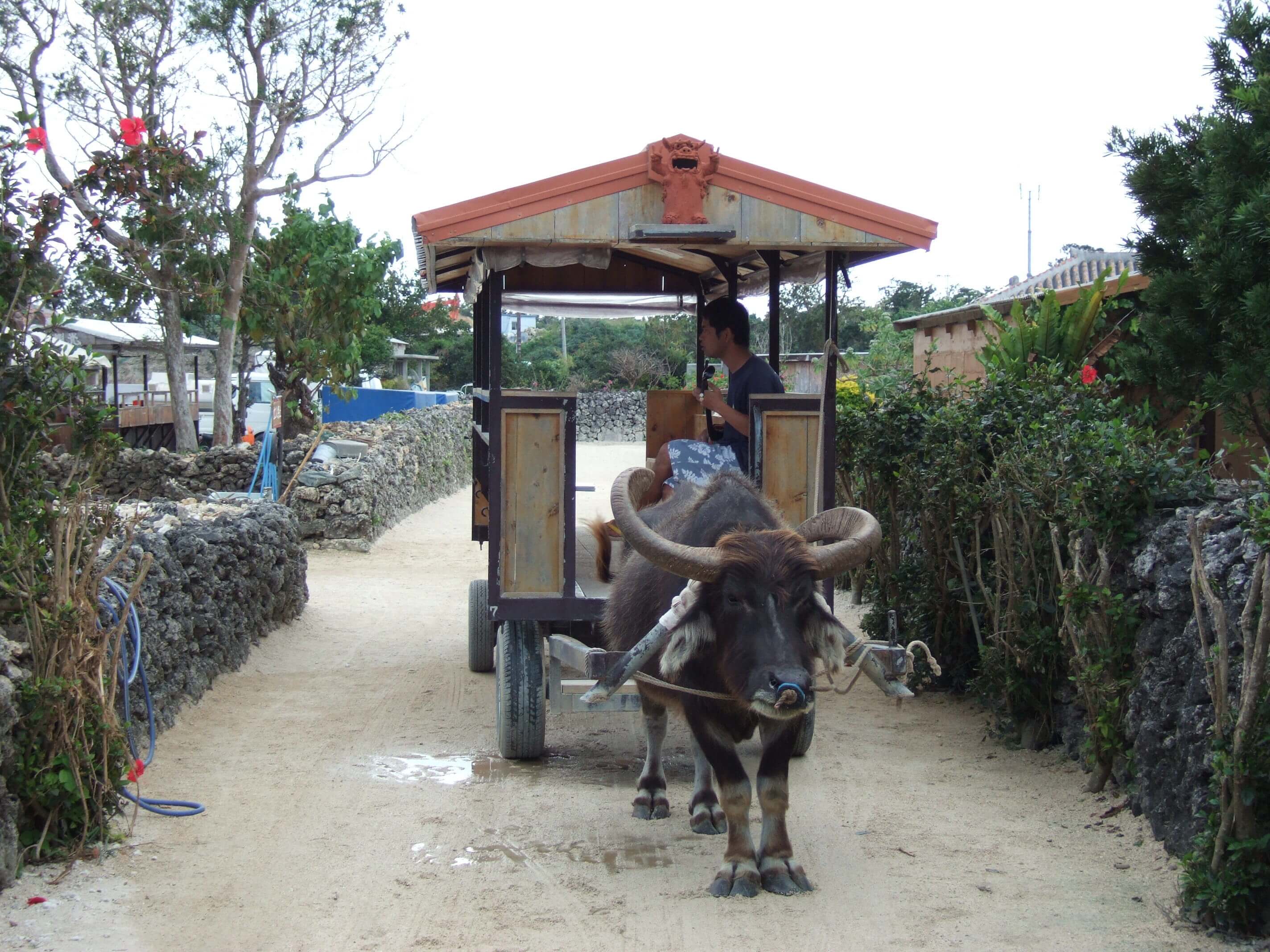 竹富島観光と言えば「水牛車」というイメージをお持ちの方が多いのではないでしょうか。歩くよりゆっくりのスピードで観光を楽しむというゆったりとした時間の使い方が島の雰囲気にあうのでしょうかね。三線の演奏を聴きながら竹富島の美しい風景を楽しむのは最高です。