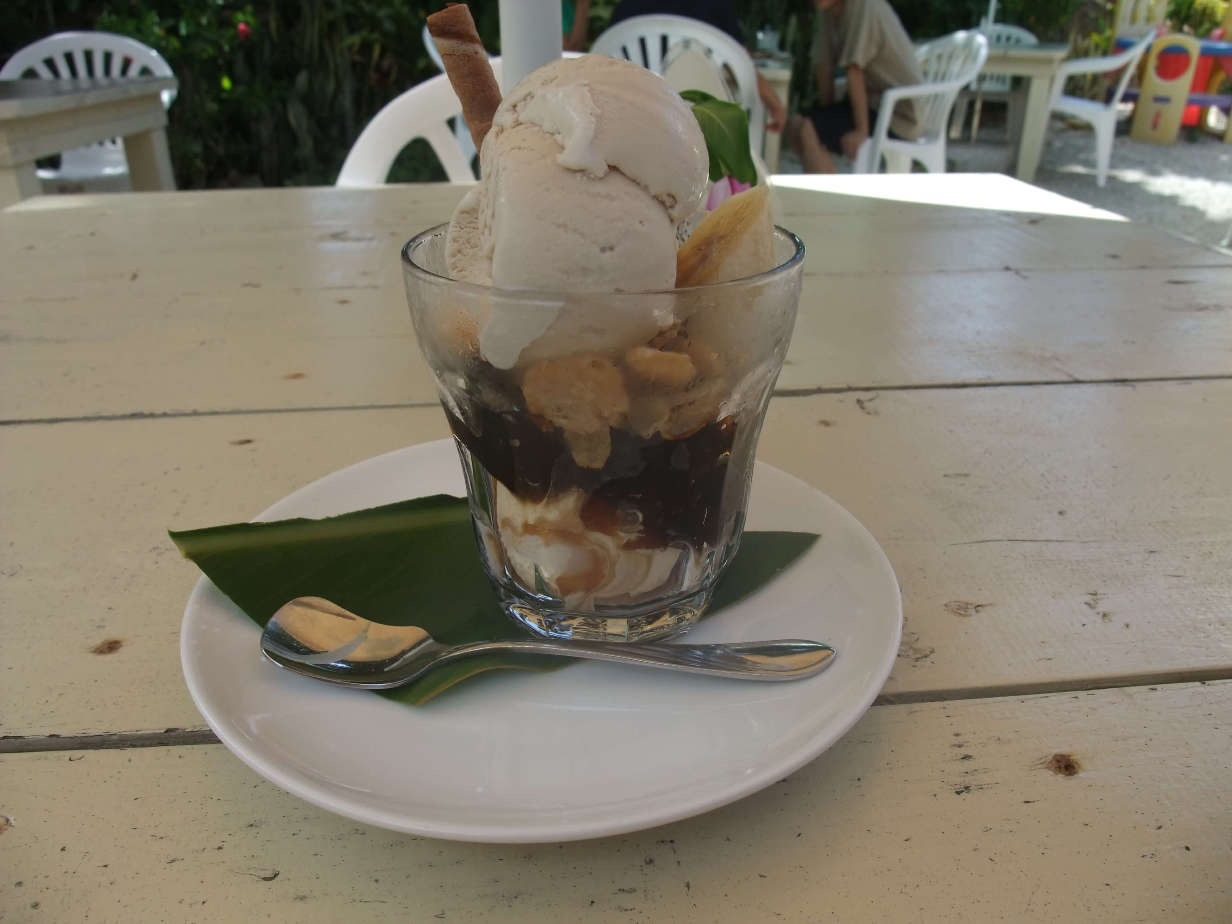 集落の入り口にあるカフェです。パフェやかき氷からお酒もおいてます。古民家風の母屋で食べるもよし、外のパラソルの下のテーブルで食べるもよしです。私が食べたのは「大人のパフェ」でした。港まで近いので帰りまでの時間つぶしにもいいです。