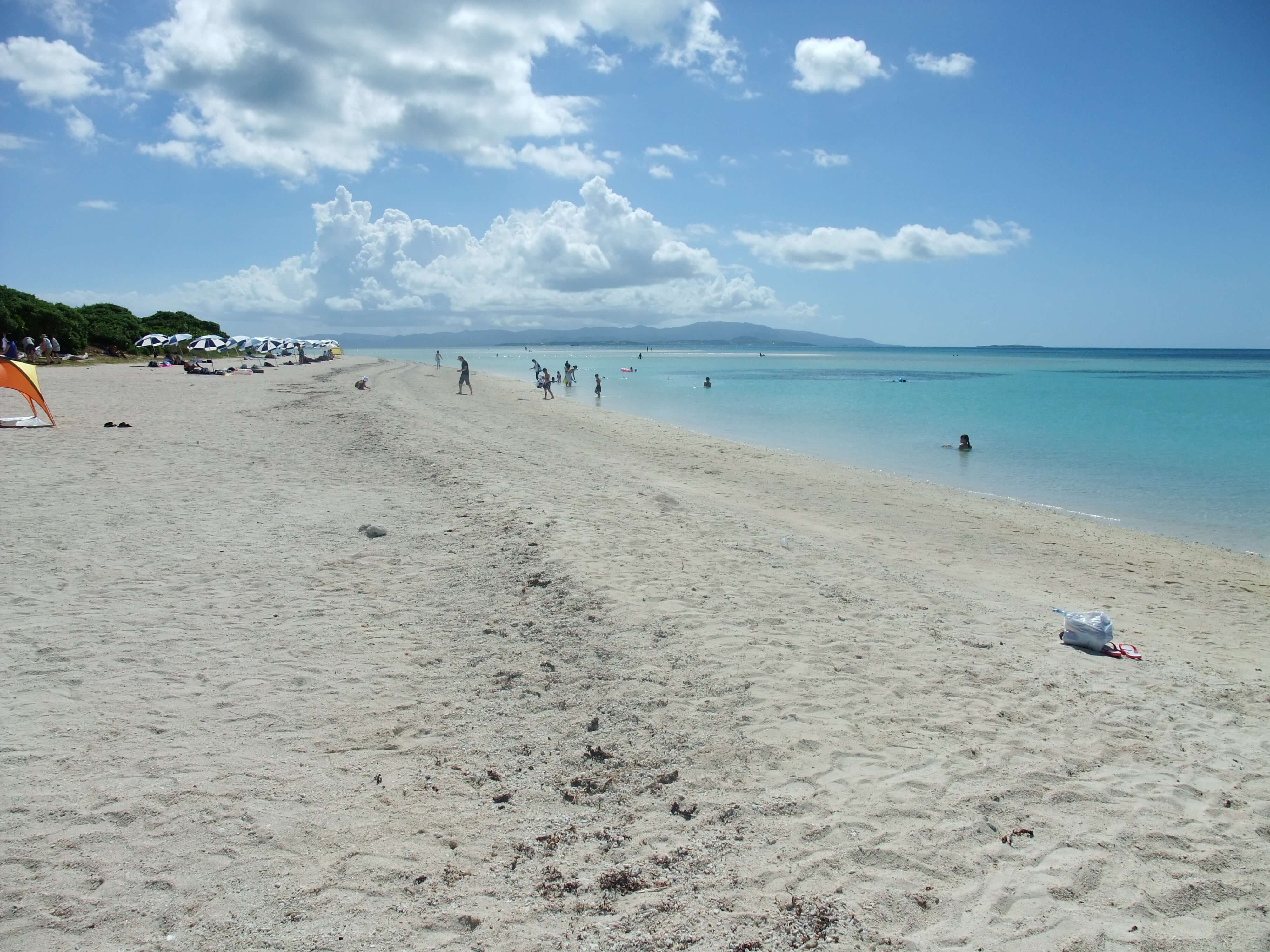 「星砂の浜」と呼ばれており星の形をした星砂が見つけられるとして有名です。しかし現在は星砂はほとんど見つかりません。娘は10分くらい探していましたがようやく1~2個見つけた程度でした(笑)。星砂が欲しければお土産物を売っているお店で買いましょう。なお潮の流れが速いので遊泳は禁止です。