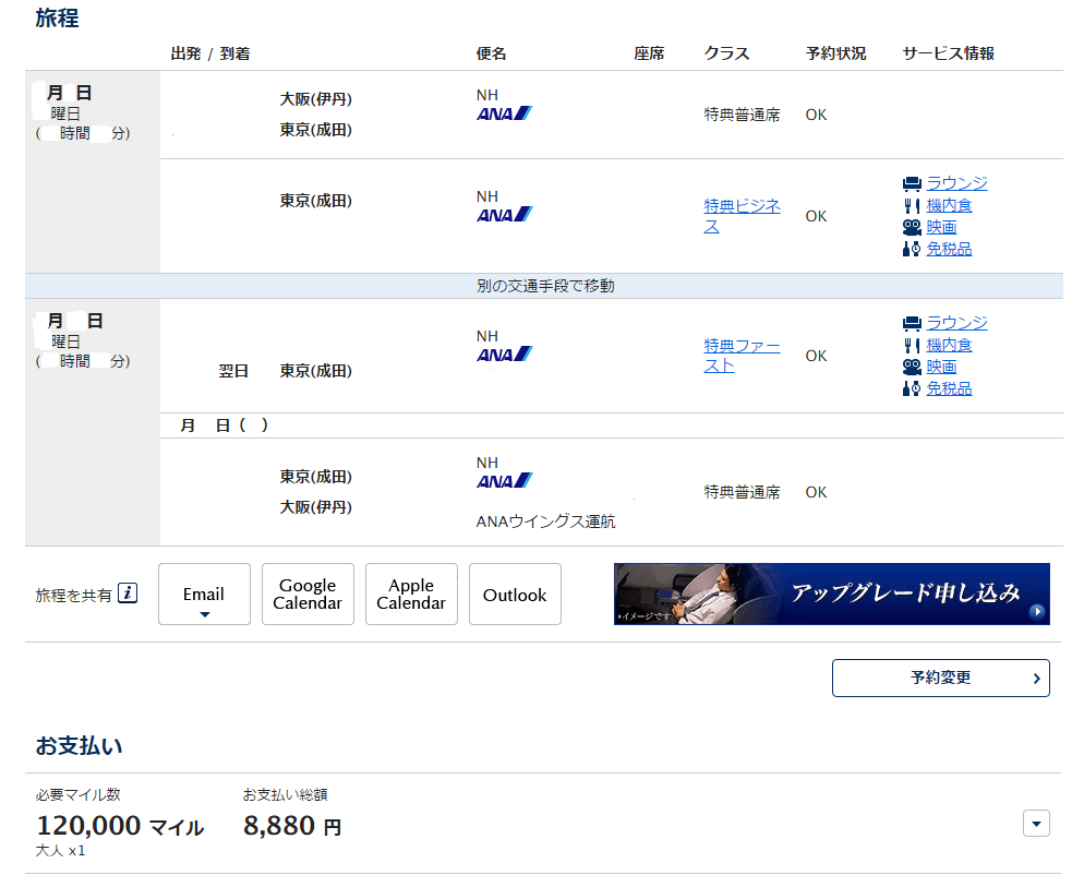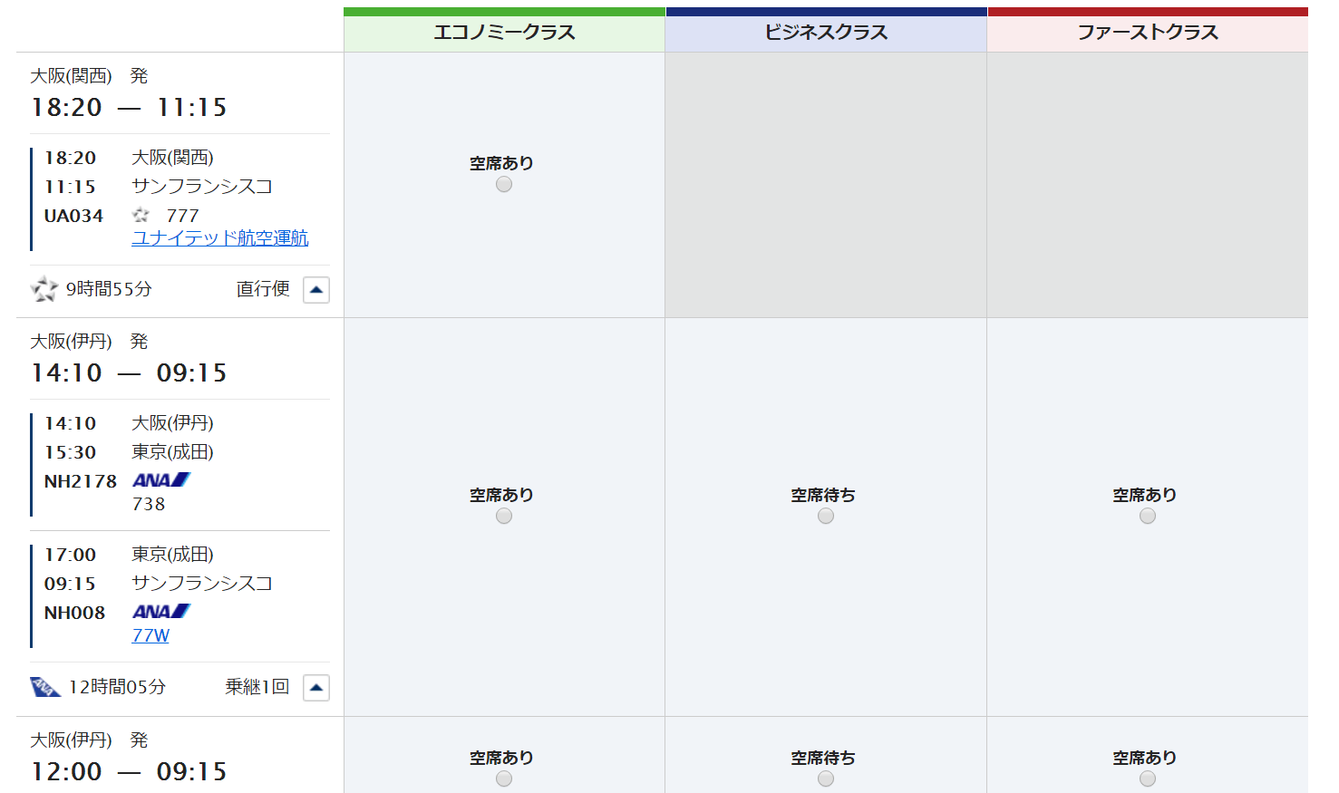 要するに一旦エコノミーやビジネスで発券しておき、空席があり追加のマイルがあればエコノミー→ビジネスorファースト、ビジネス→ファーストに変更できるのです。僕は以前JAL派でしたのでJALで国際線特典航空券を発券したことがありANAも同じだろうと信じ切っていたのです。