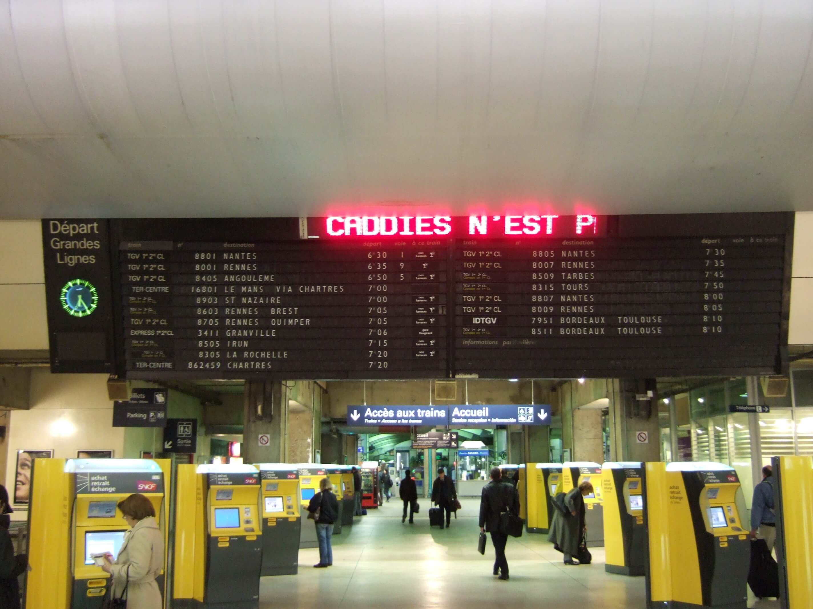 朝5時15分に起床し5時45分にホテルを出発します。メトロでモンパルナスへ。動く歩道を歩き(ここがやはり大阪人か)SNCF(フランス国鉄)モンパルナス駅を目指します。