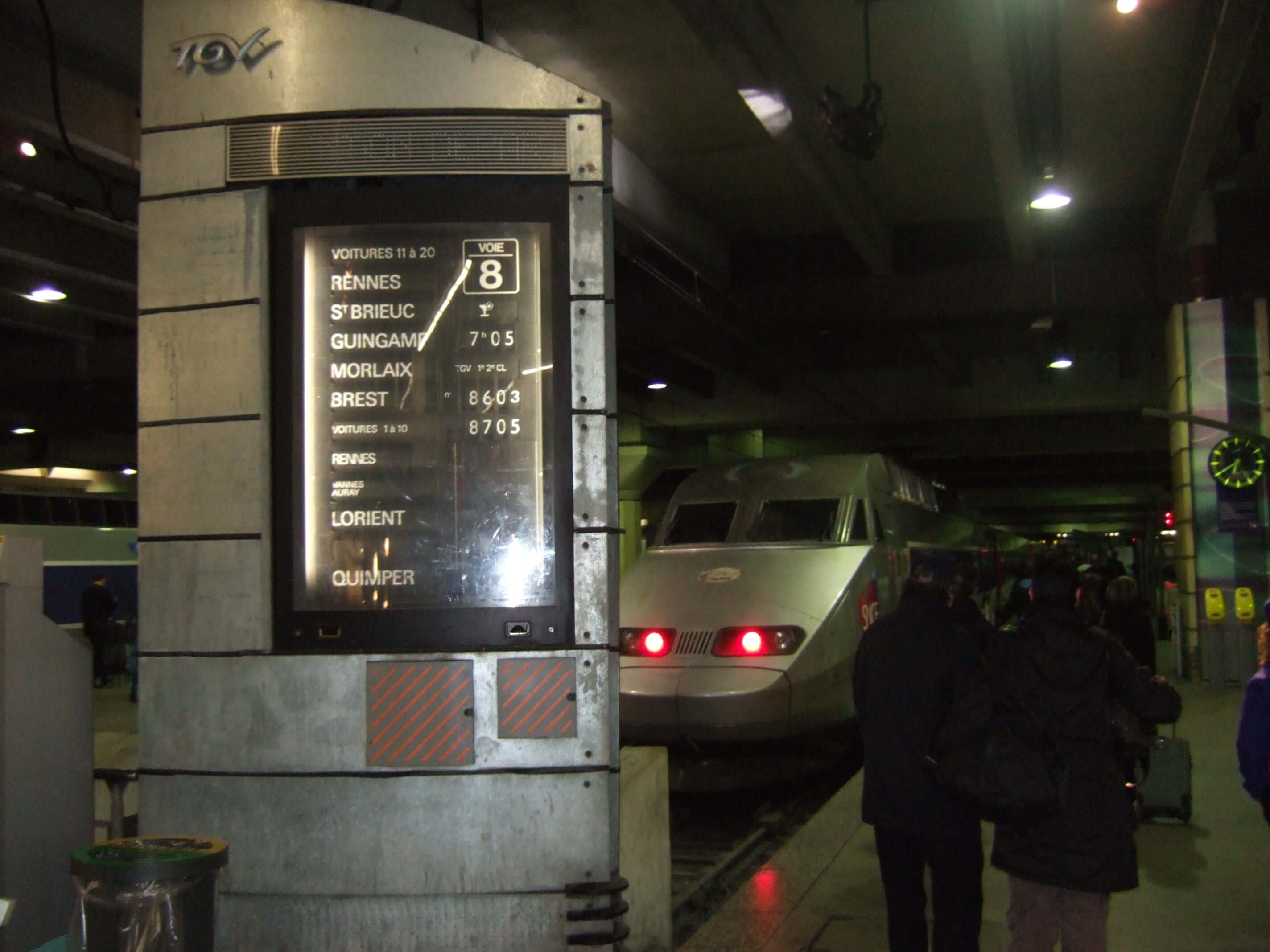 モンパルナス駅は3つのターミナルに別れており相当広く気を抜くと迷子になります。早めに着いたほうがよいというアドバイスに従い出発したがあまり迷わず6時25分に到着しました。