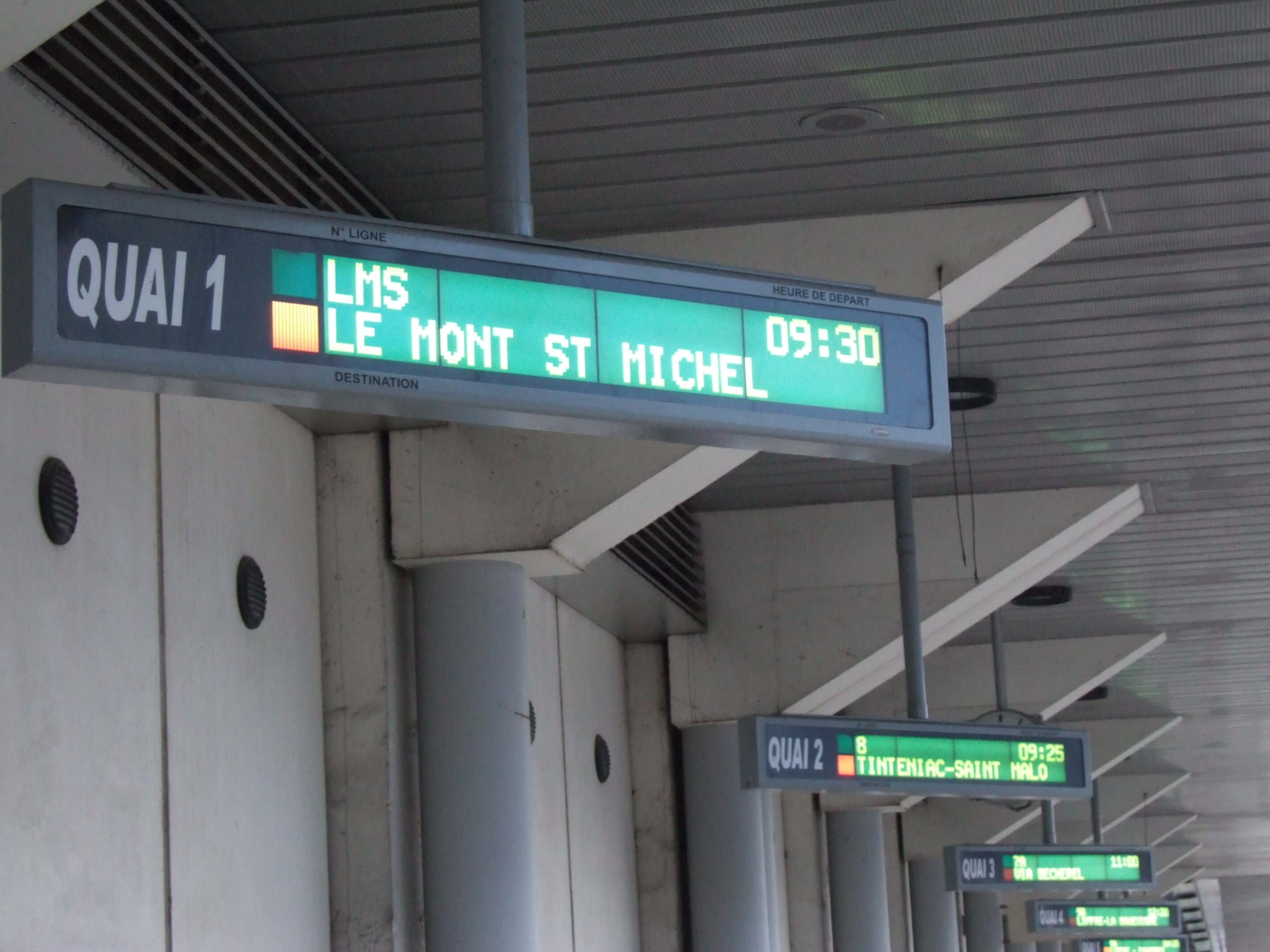 建物を突っ切って外に出るとバス乗り場があります。モンサンミッシェル行きは1番乗り場であることが多いようです。
