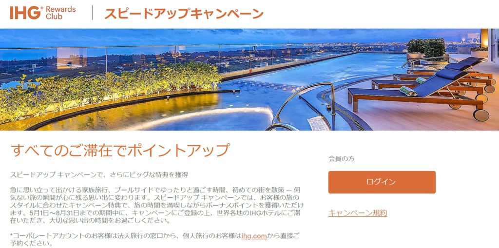 現在実施している「POINTS UNLIMITED」キャンペーンが5/5までですので切れ目なくキャンペーンが続いてありがたいですね!キャンペーンは滞在前に事前登録が必要なのでご注意ください!