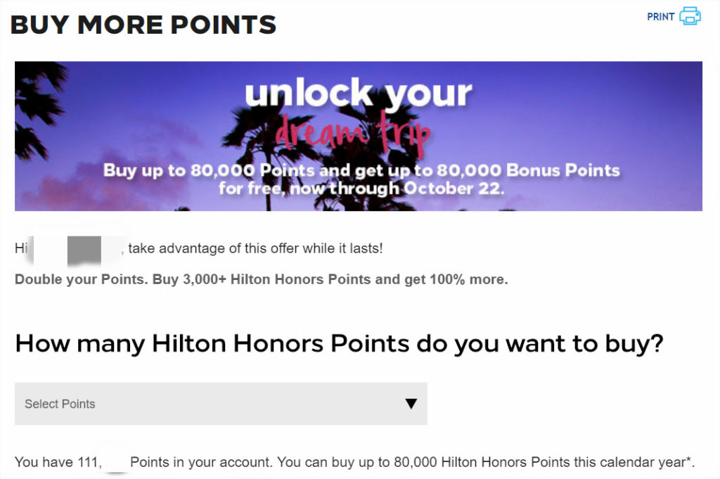 ヒルトンオナーズポイント購入100%ボーナスセールも行われています