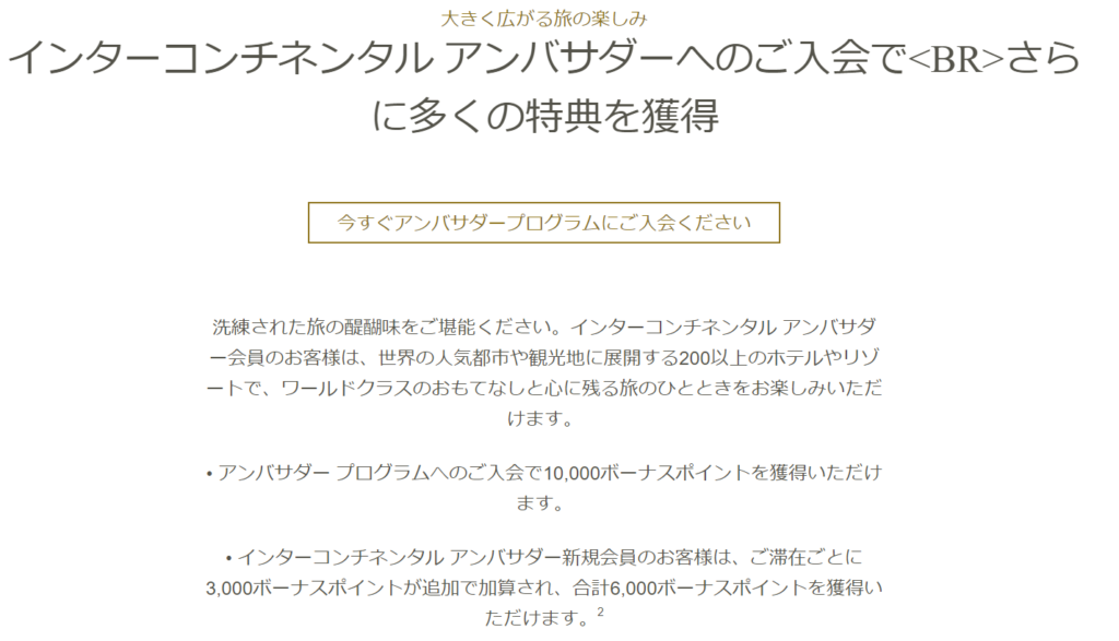 インターコンチネンタルアンバサダー新規入会で10000ポイントが付与されます。