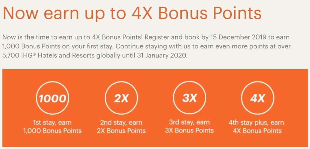 滞在を重ねるごとにボーナスポイントが増え、4滞在目以降は4倍のボーナスポイントが加算されるという久々の大型キャンペーンです
