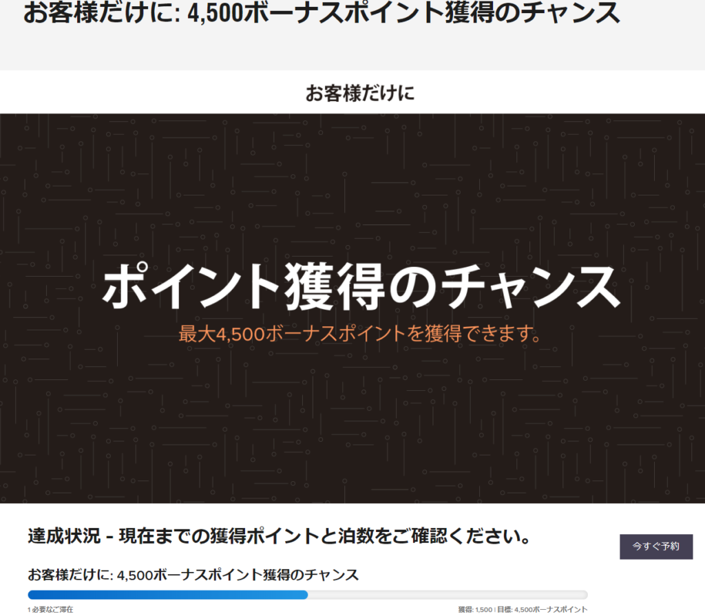 2020年3月31日までが期限で、1滞在で1500ポイント、2滞在で3000ポイント、合計5000ポイント獲得というキャンペーンです。