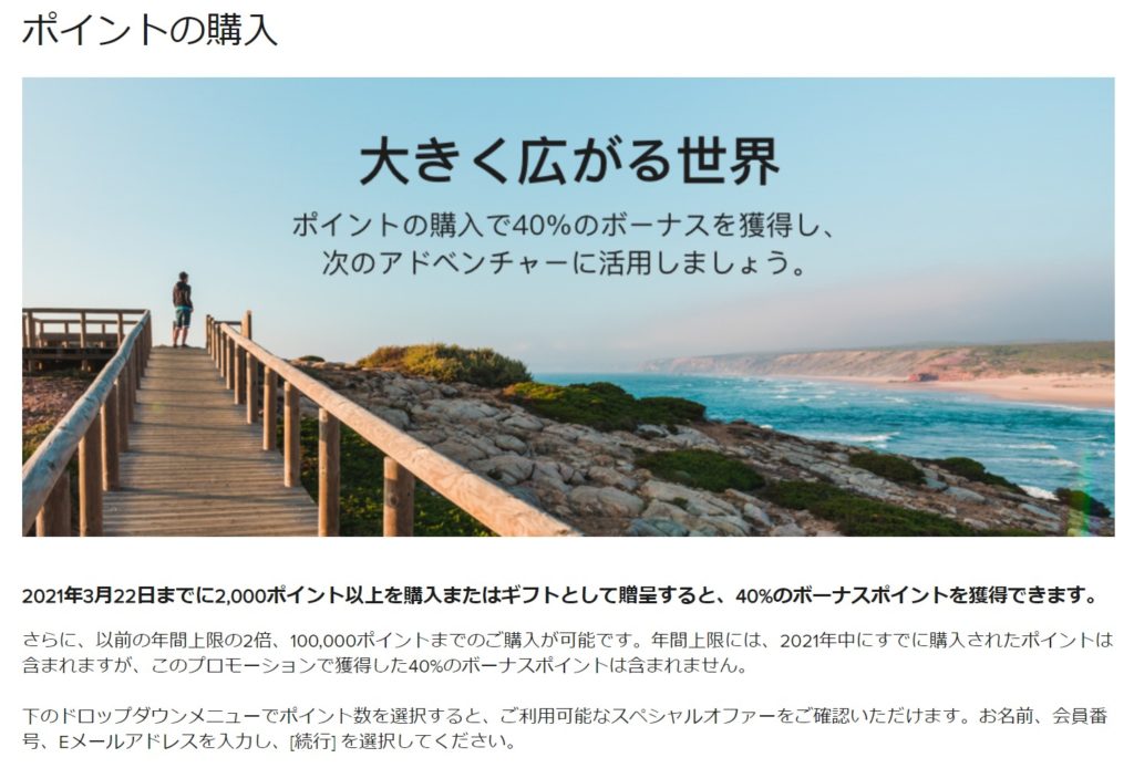 2000ポイント以上の購入で40~50%のボーナスポイント獲得。年間10万ポイントまで購入可能
