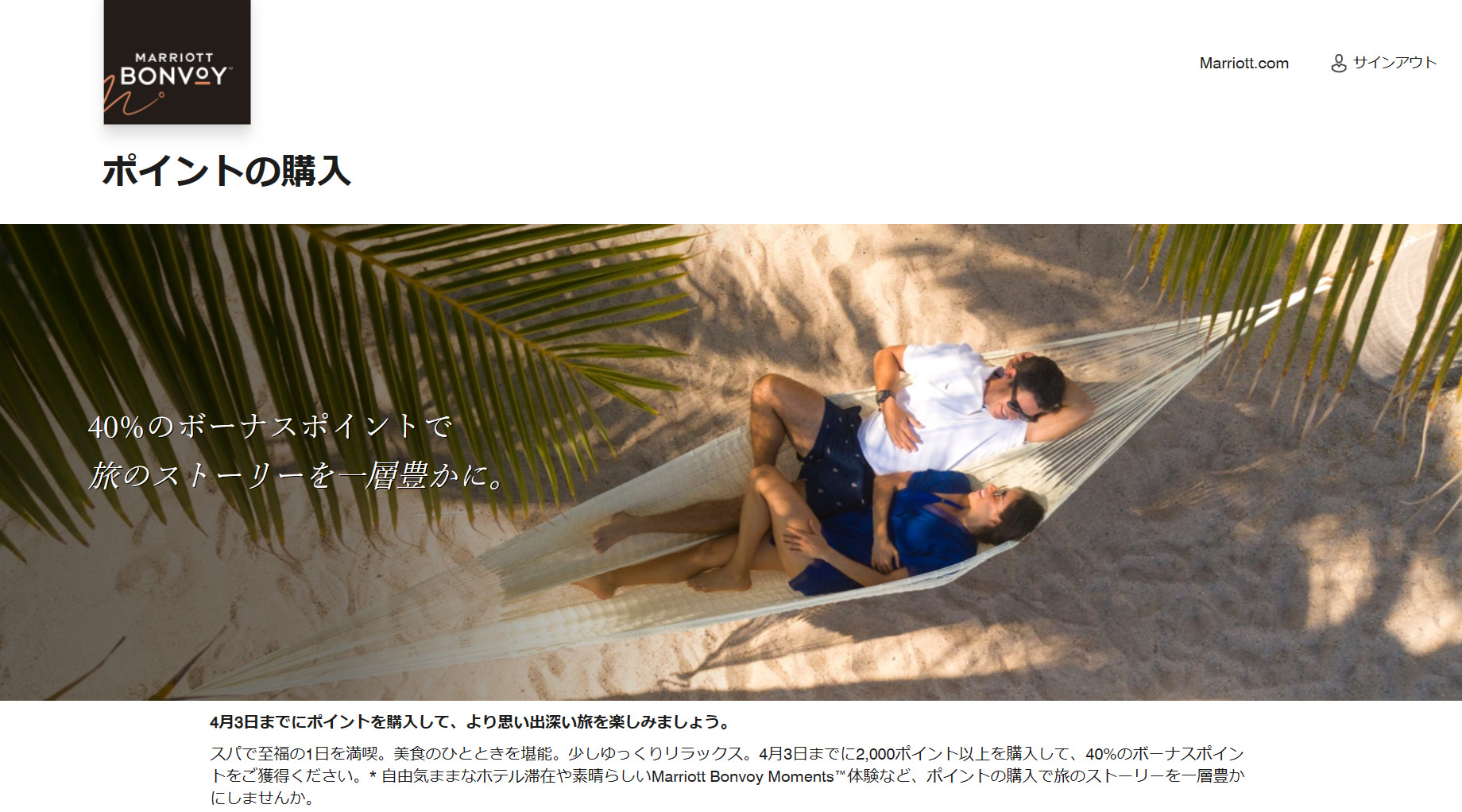 Marriott BonvoyポイントはTopCashbackからPoints.com経由での購入がお得です