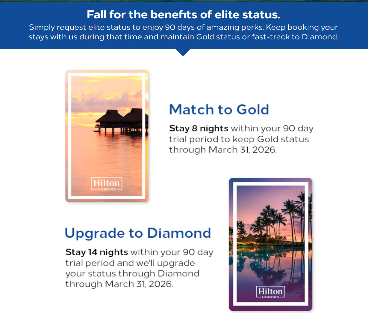 2024年8月時点ヒルトンのステータスマッチの条件は以下となっています