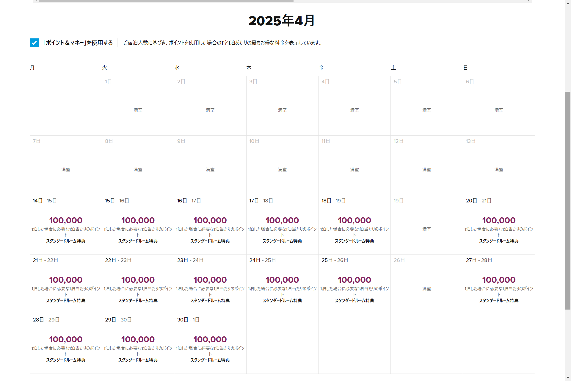 ポイント泊は10万ポイントとなっていて有償価格と比べるとリーズナブルに感じます