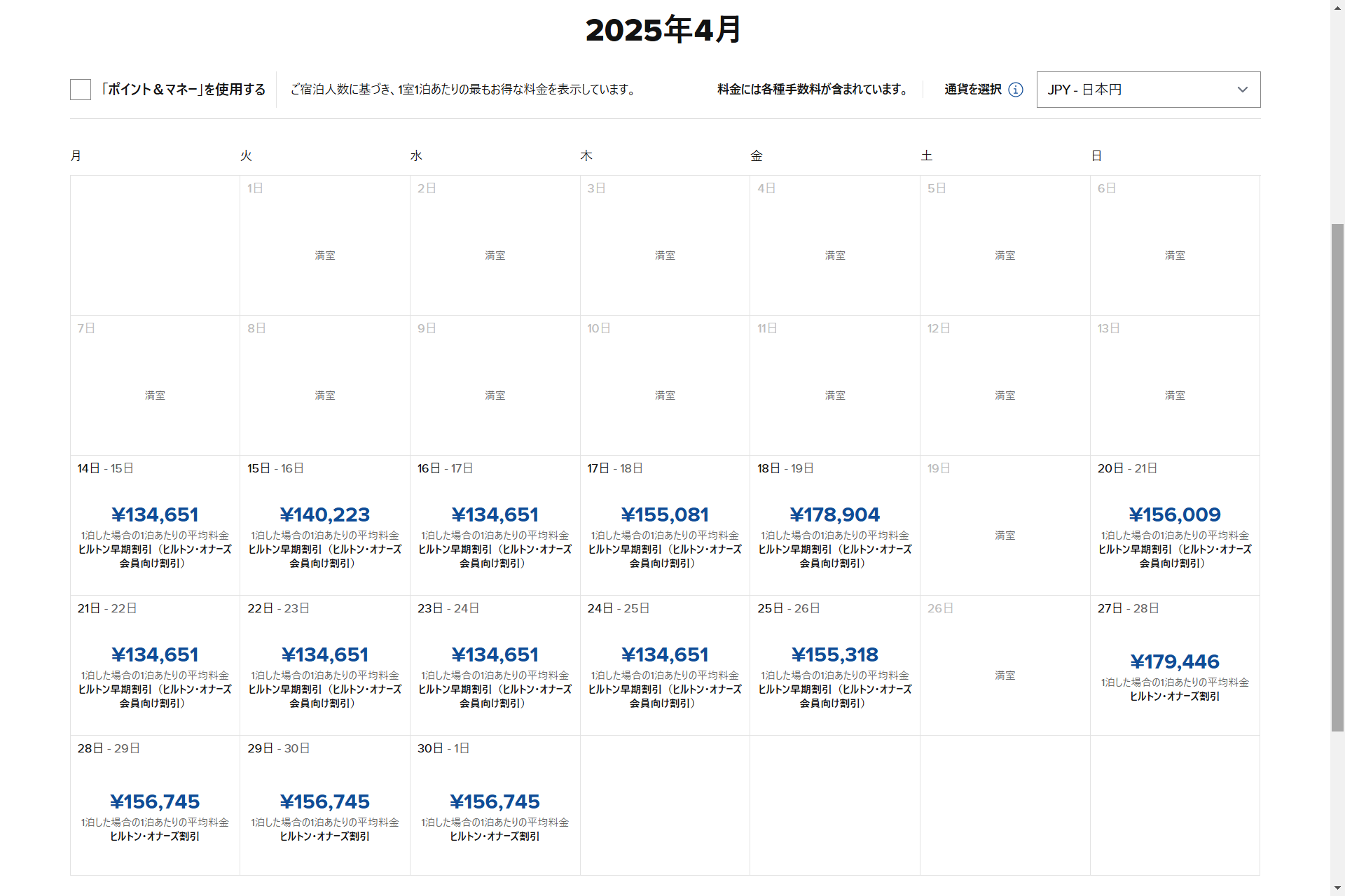 2025年1月1日より前にチェックインされたご登録済みのヒルトン・オナーズ会員の方は、2025年1月1日から2025年4月30日までの間にそのご滞在を完了した場合、ポイントをご獲得いただけます。