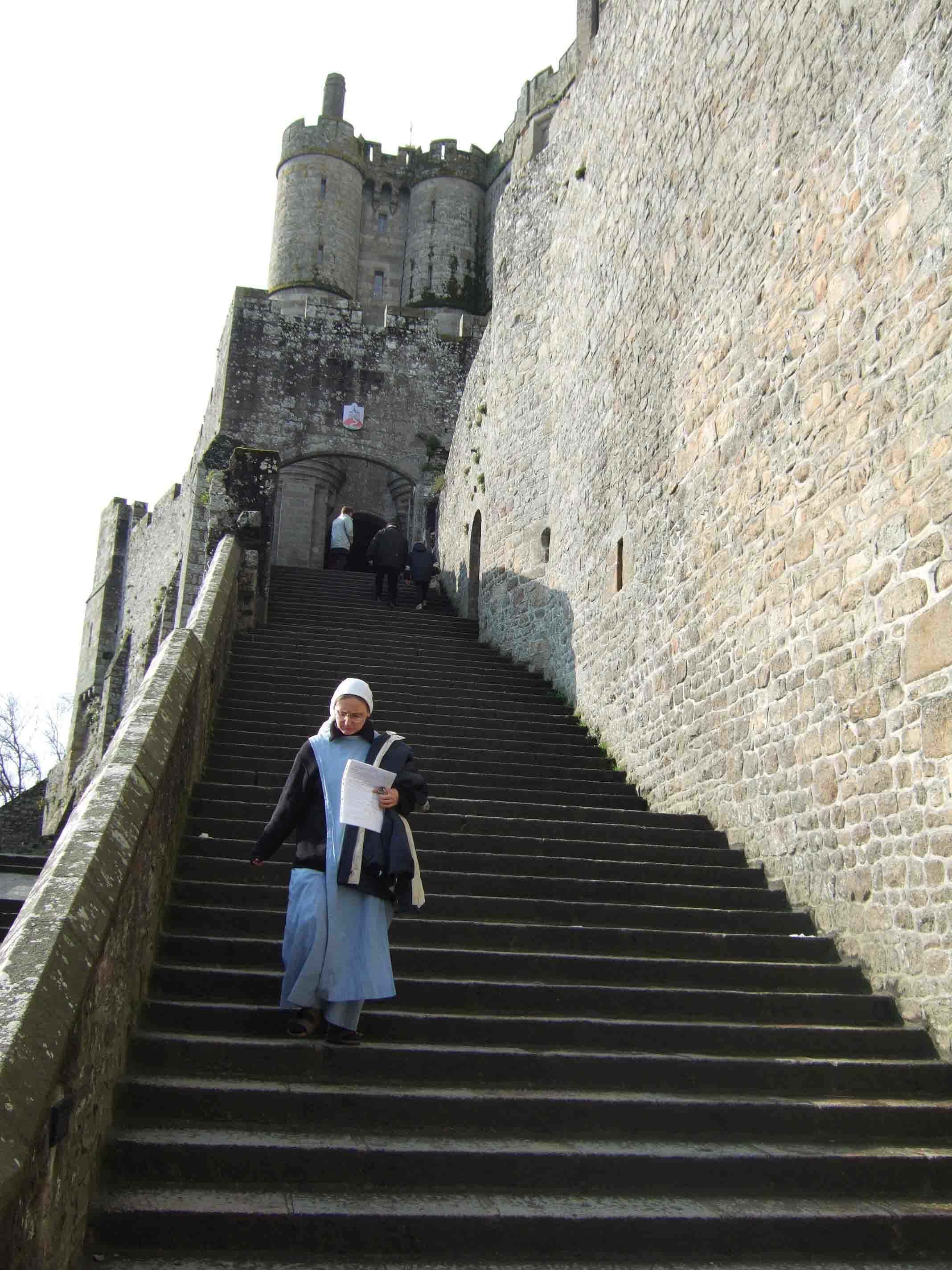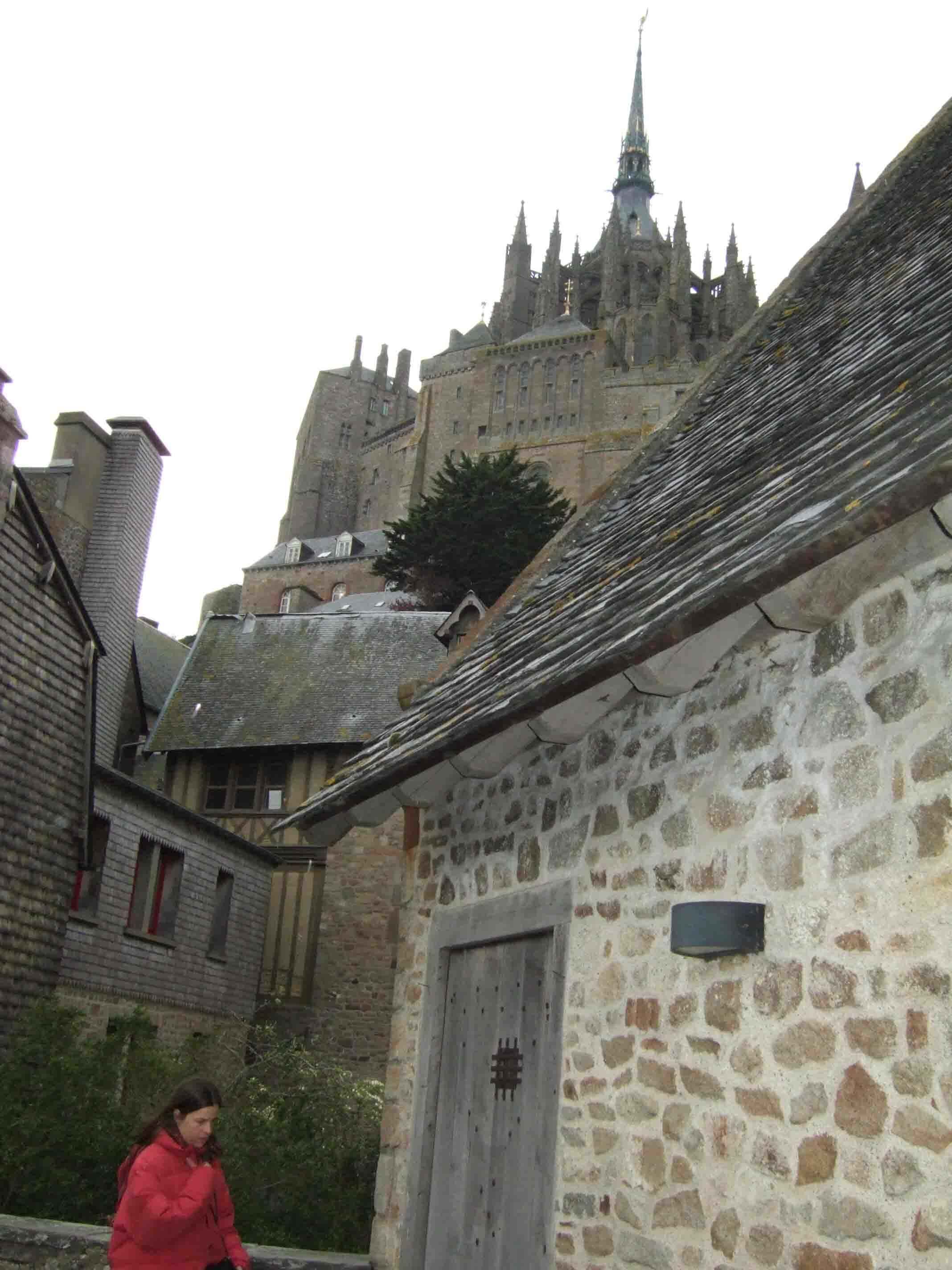 パリより気温は低い上に風がめちゃ強くて体感温度はかなり低いです。パリよりワンシーズン寒い服装が必要ですし、夏でも風を防ぐウインドブレーカーのようなものや長袖の羽織るものが必須のようです。また髪の長い女性はゴムなど髪をまとめるものがないと写真がえらいことになります(笑) 内部は石造りで階段も多いですし、ただでさえ麓からかなり登りますので靴は履きなれた歩きやすいものにしておく必要があると思います。
