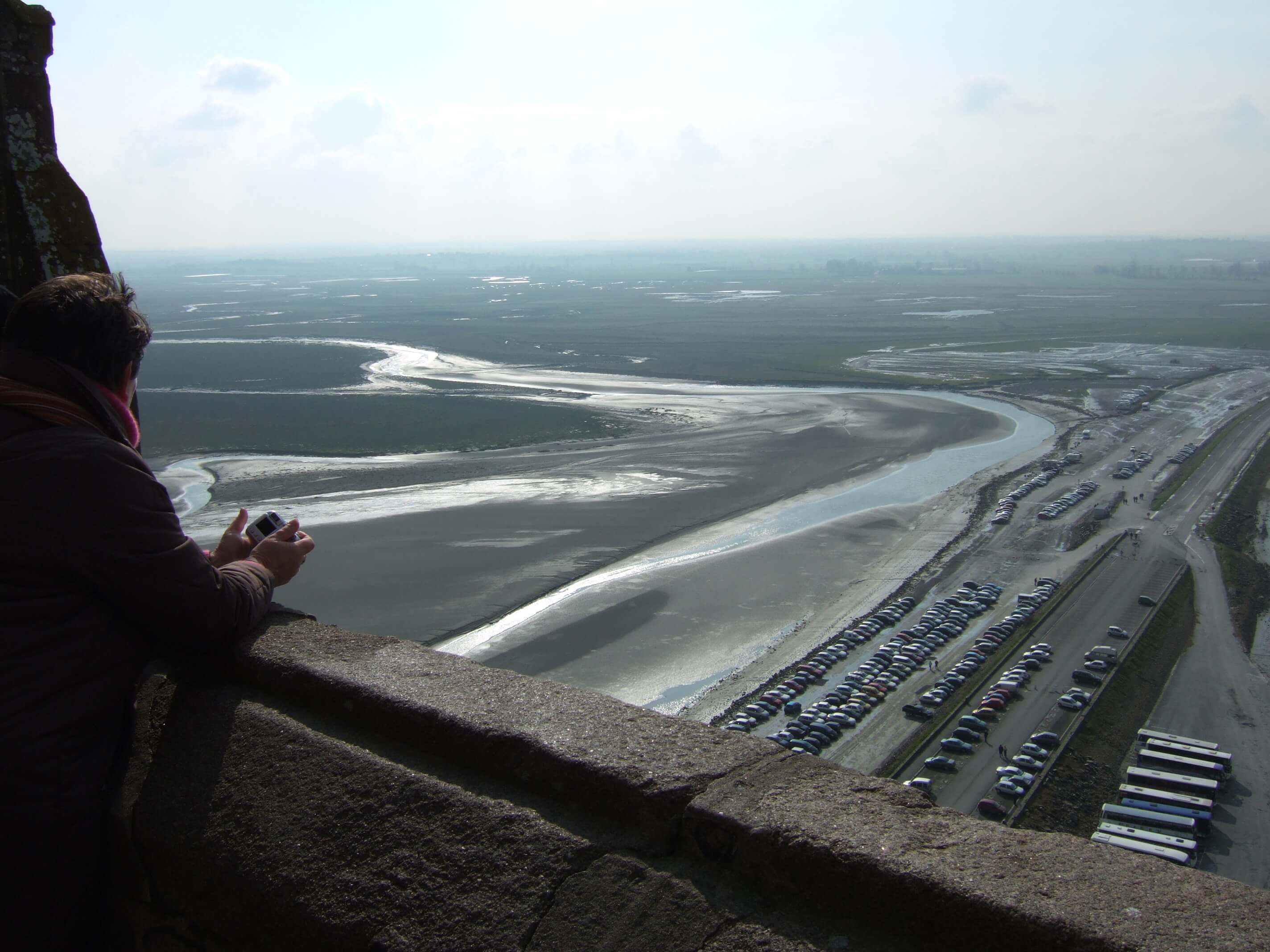 まずはテラスからノルマンディーの海岸を見渡します。僕がいる時間は残念ながら満潮にならずガイドブックによく載っているような感じではありませんでしたが、広大な海や干潟、羊がたくさんいる草原といった眺望を楽しめました。