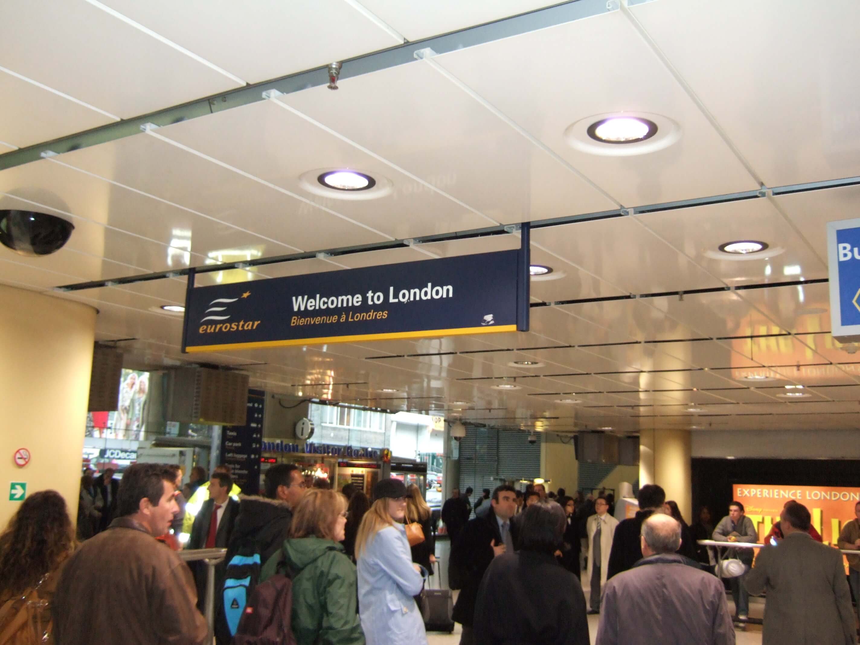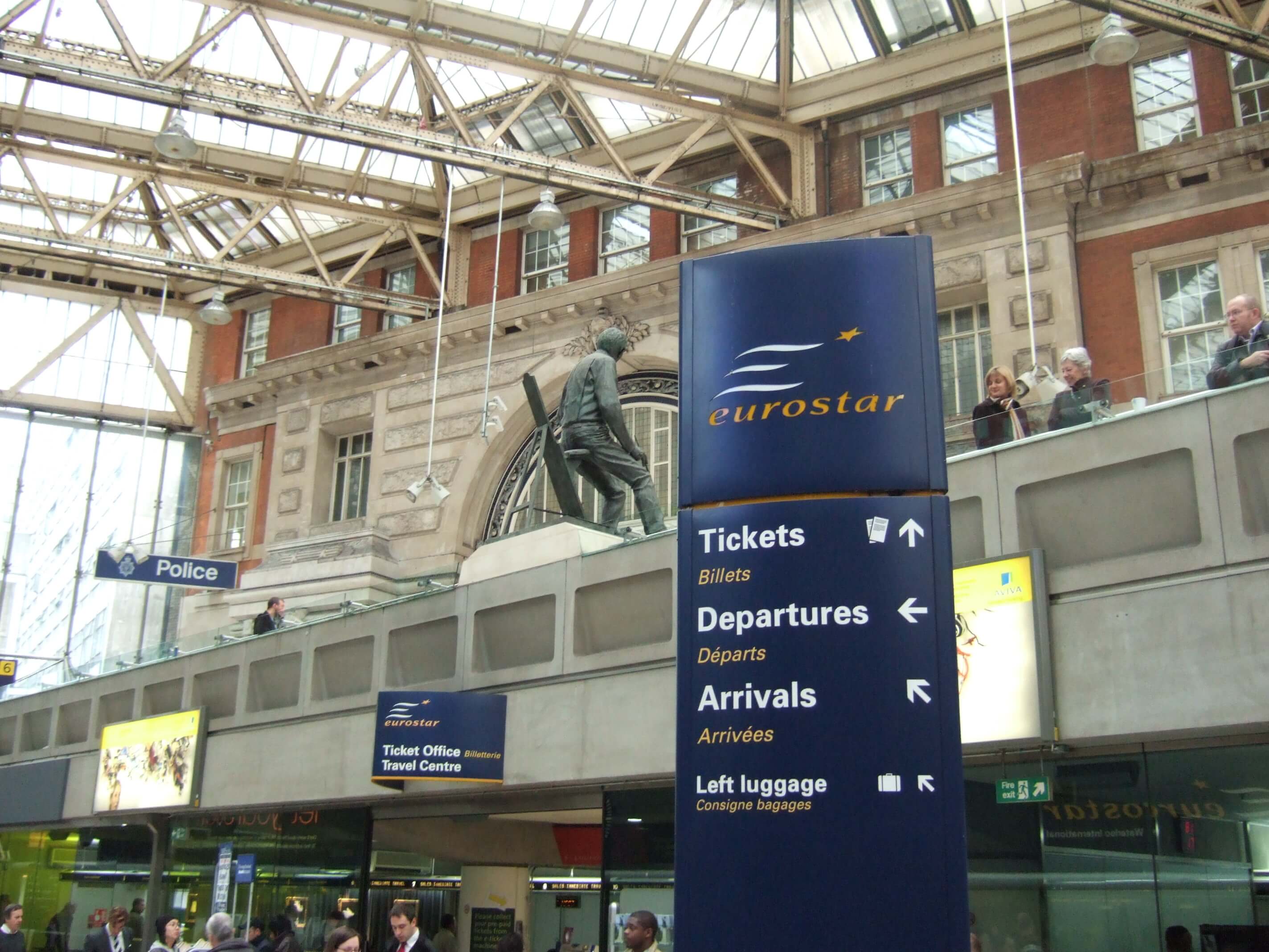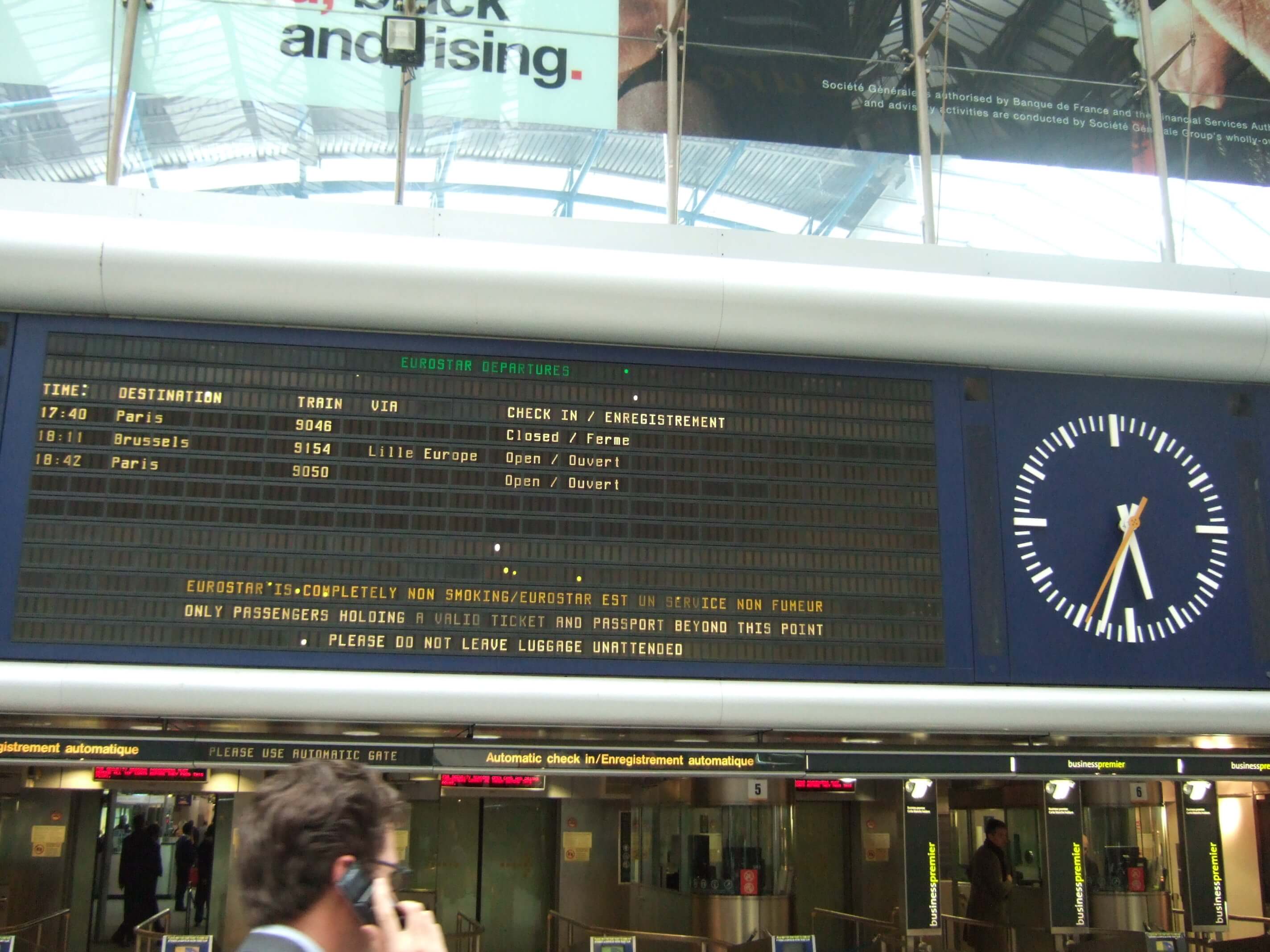 フランスの駅は改札というものがないが、ユーロスターは特別に改札があります。改札を通るとフランス出国審査、すぐ後にイギリス入国審査があります。