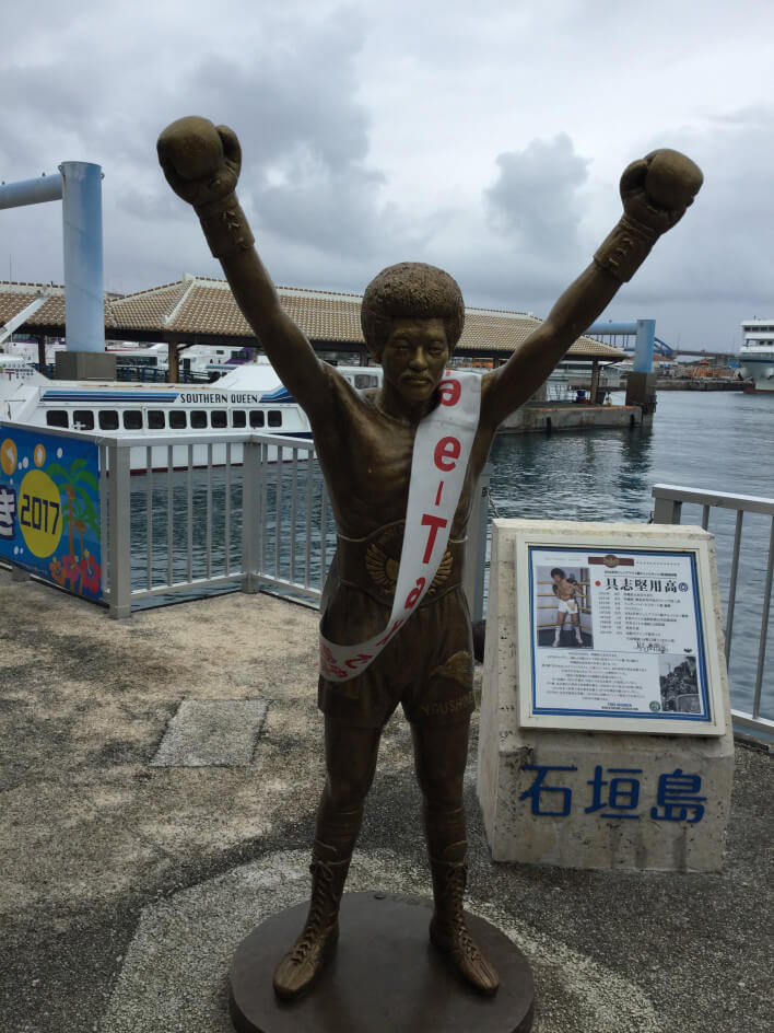 そして最近修行僧のTwitterによく出てくる具志堅さんの像に挨拶をしてきました。具志堅さんは確定申告が終わったというのにe-taxのタスキをされていました。