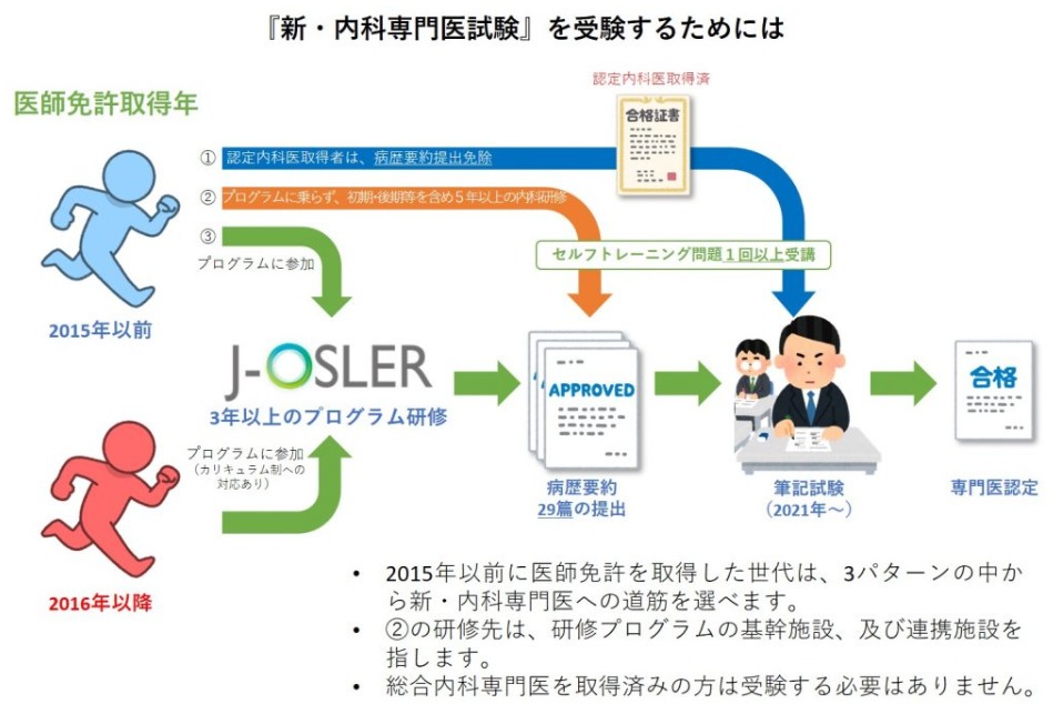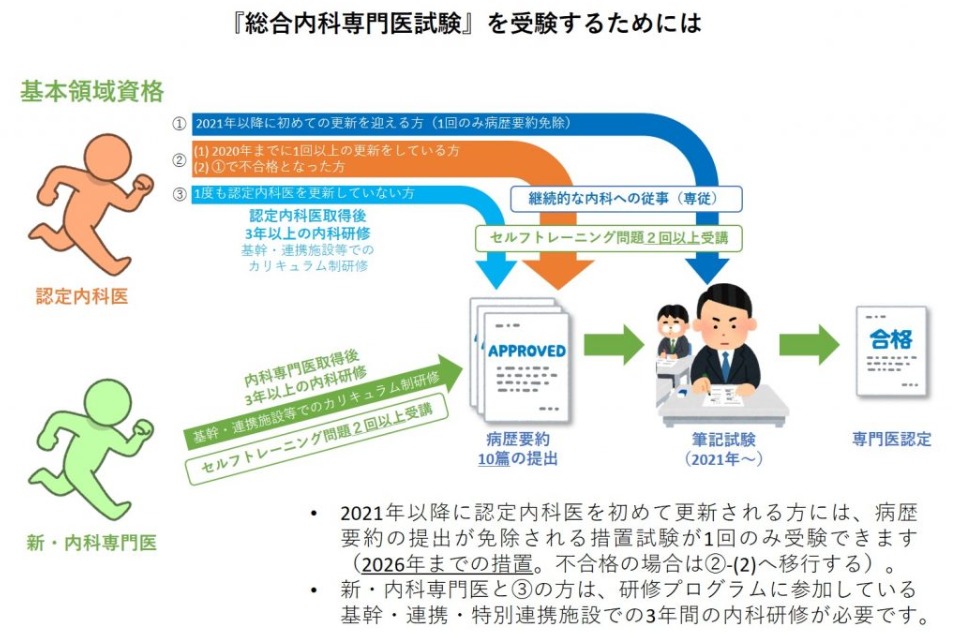初期・後期などを含め5年以上の内科研修+セルフトレーニング問題1回以上受講+病歴要約29篇の提出が必要