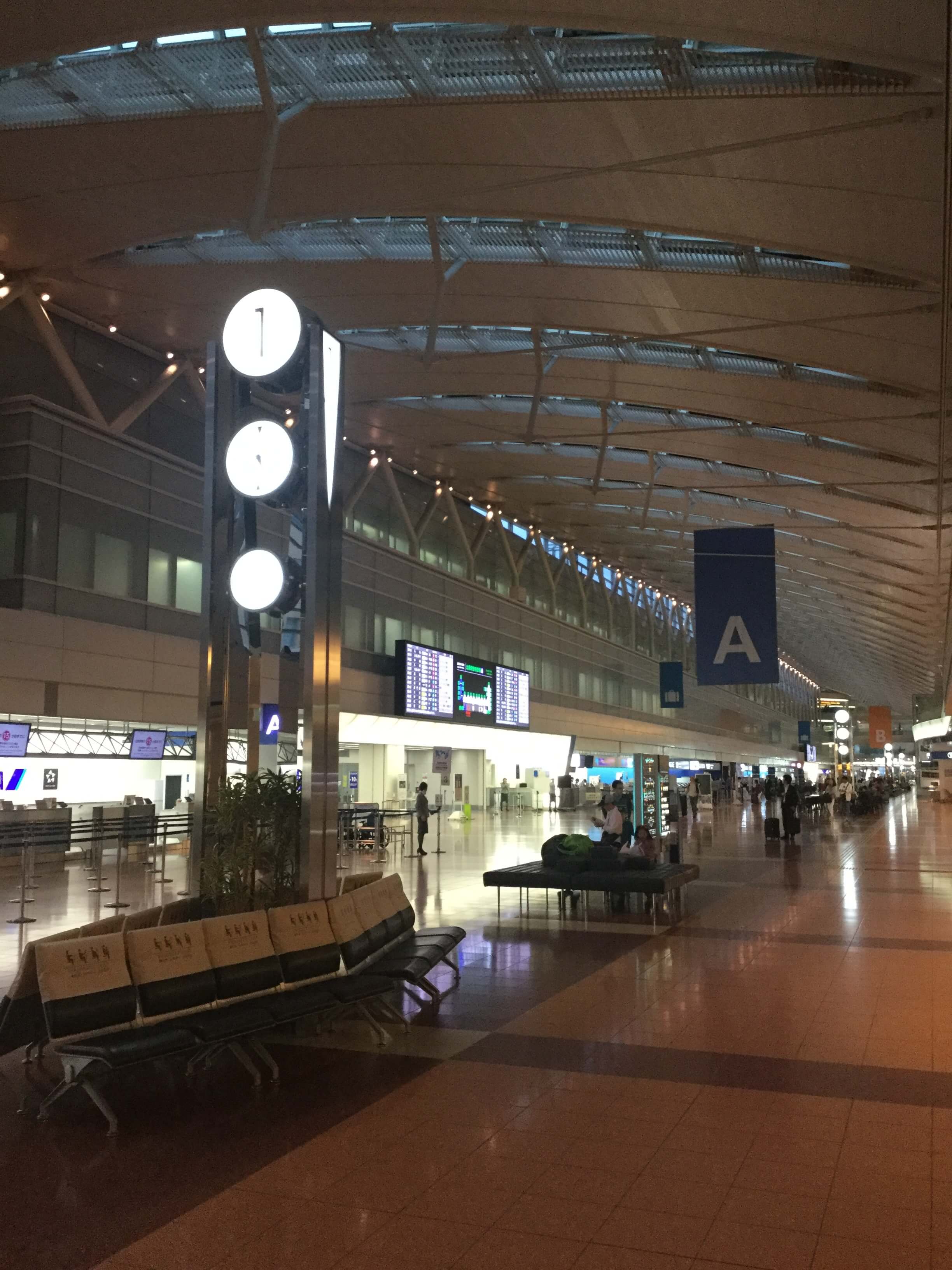 5:15からラウンジが空くということで5時過ぎに「羽田エクセルホテル東急」をチェックアウトして空港へ!といってもドアを出れば空港ですが(笑)。さすがに早い時間は人も少なく暗いです。