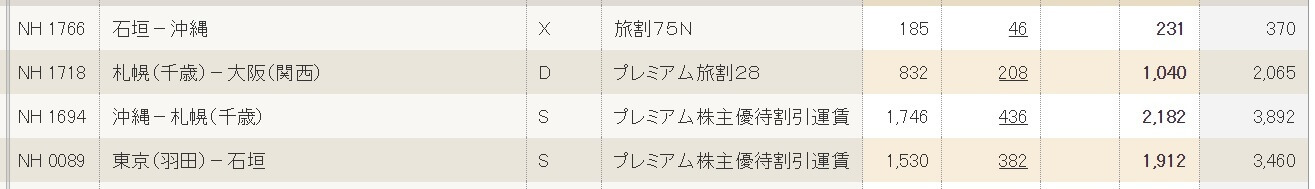 ANA1766 石垣 10:55 → 那覇 11:50 370PP(プレミアムクラス設定なし)