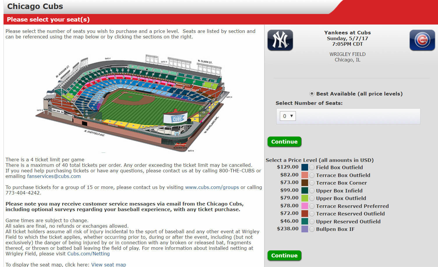 Chicago滞在中は前半にWrigley FieldでCubsの試合、後半にGuaranteed Rate Field(いつの間にかUS Cellular Fieldでなくなっていてビックリでした)でWhite Soxの試合があります。発表の日程やボスたちとの食事の日程がなかなか決まらないうちにCubsの試合のチケットはほとんど売り切れてしまいました…。しかしCubsの試合は相手はYankees!どうしても見たくて見切り発車でチケットを予約しました。