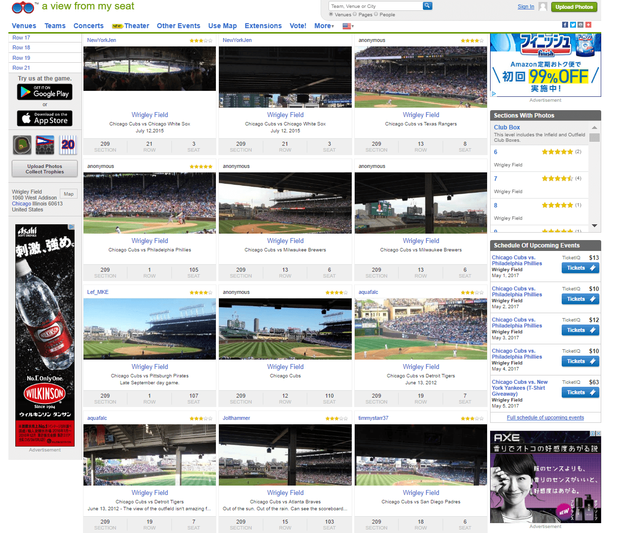下のようにいろいろな座席からの写真が投稿されていて、どのように見えるかイメージがつかめます!!