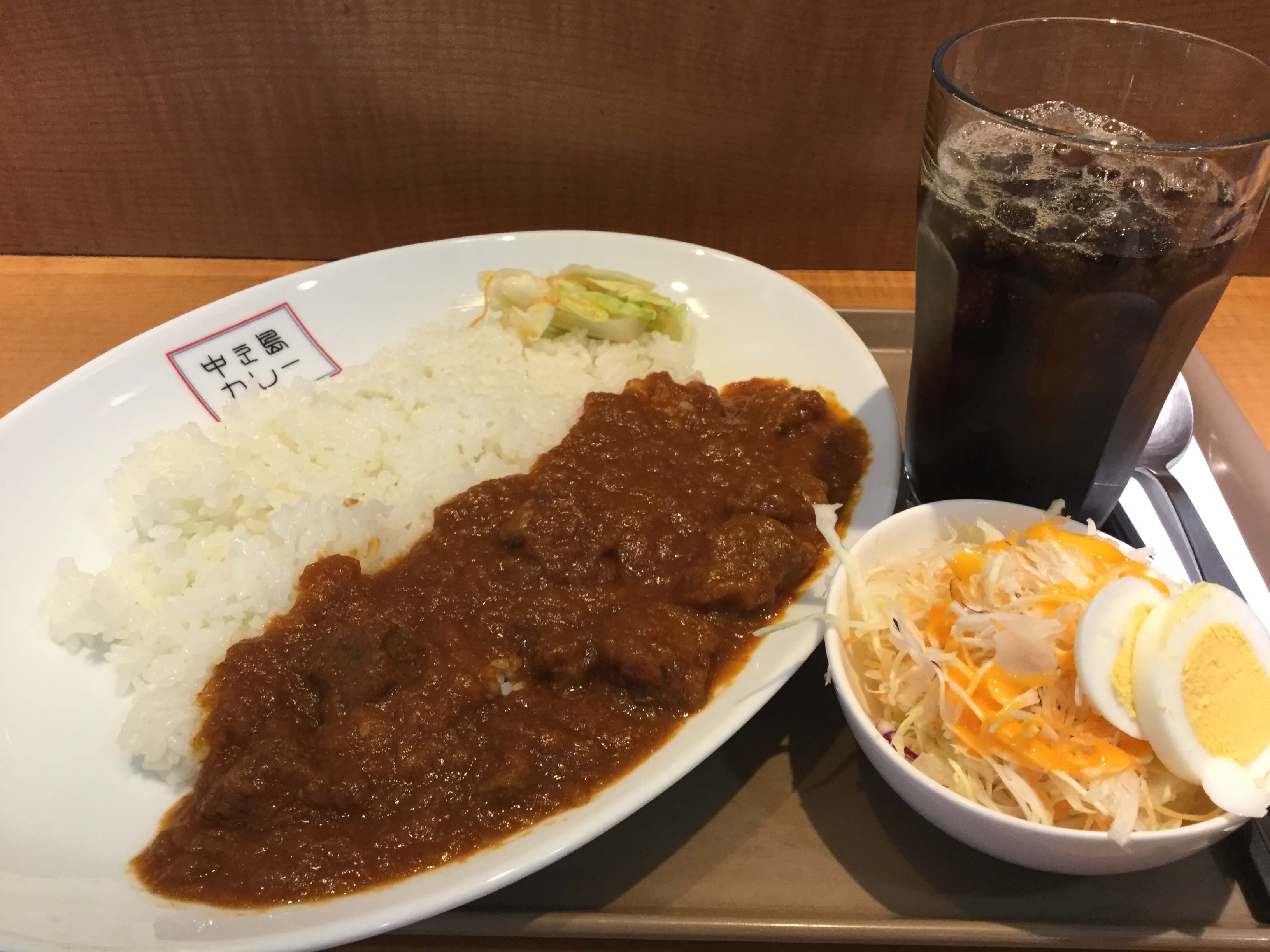 荷物を預けて身軽になったところで2階のアメックスカウンターに向かいます。いつものごとくミールクーポンを頂くためです。 今回は中之島カレーにしました!ミールクーポンだと飲み物とサラダも付くのですね!