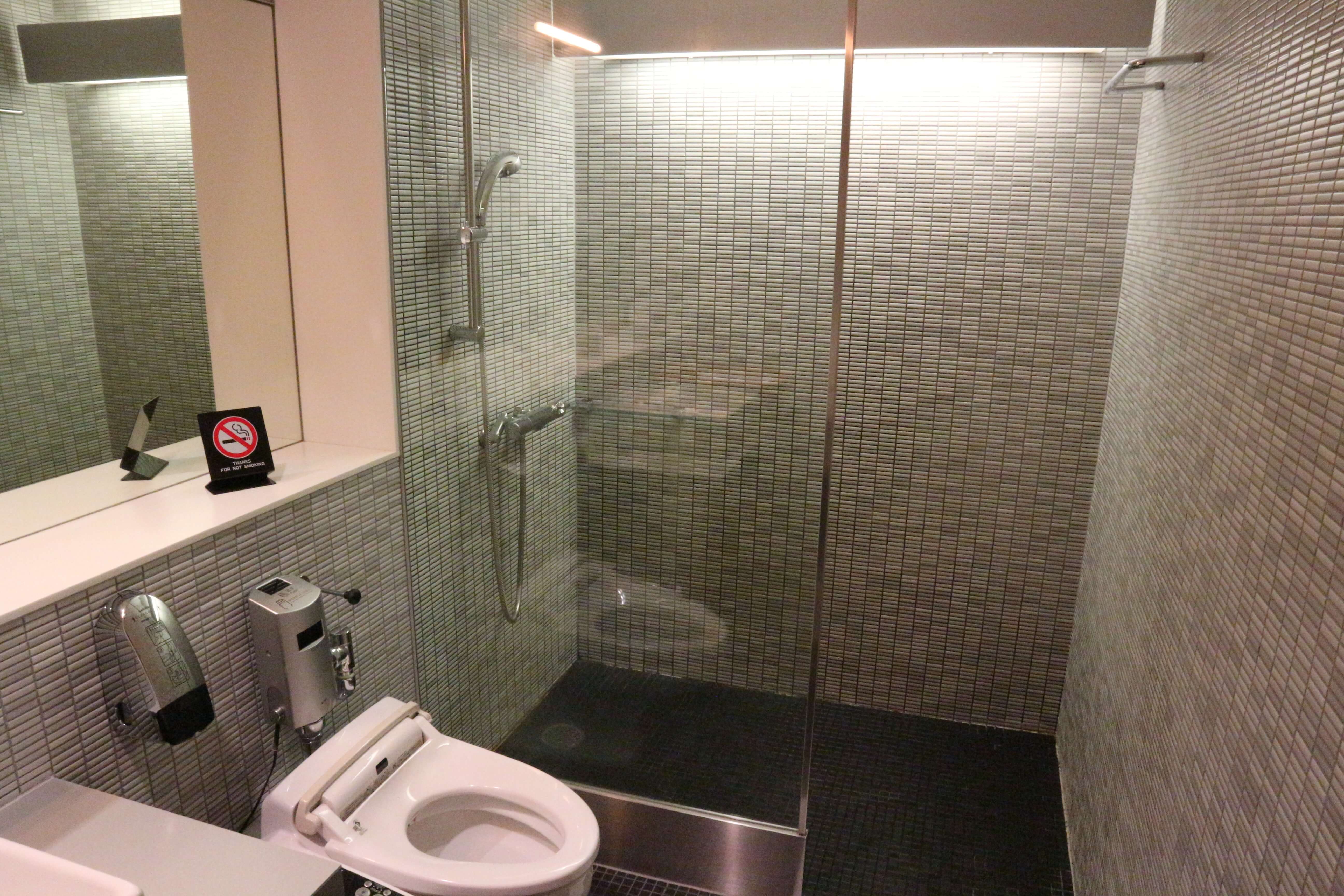 ラウンジでのシャワー初体験です!ビジネスホテルのシャワールームのイメージでしたがタイルが高級感を醸し出していて、意外と広々としていて清潔だなという印象を受けました。お腹が弱い私にはトイレがついているのも有難い。