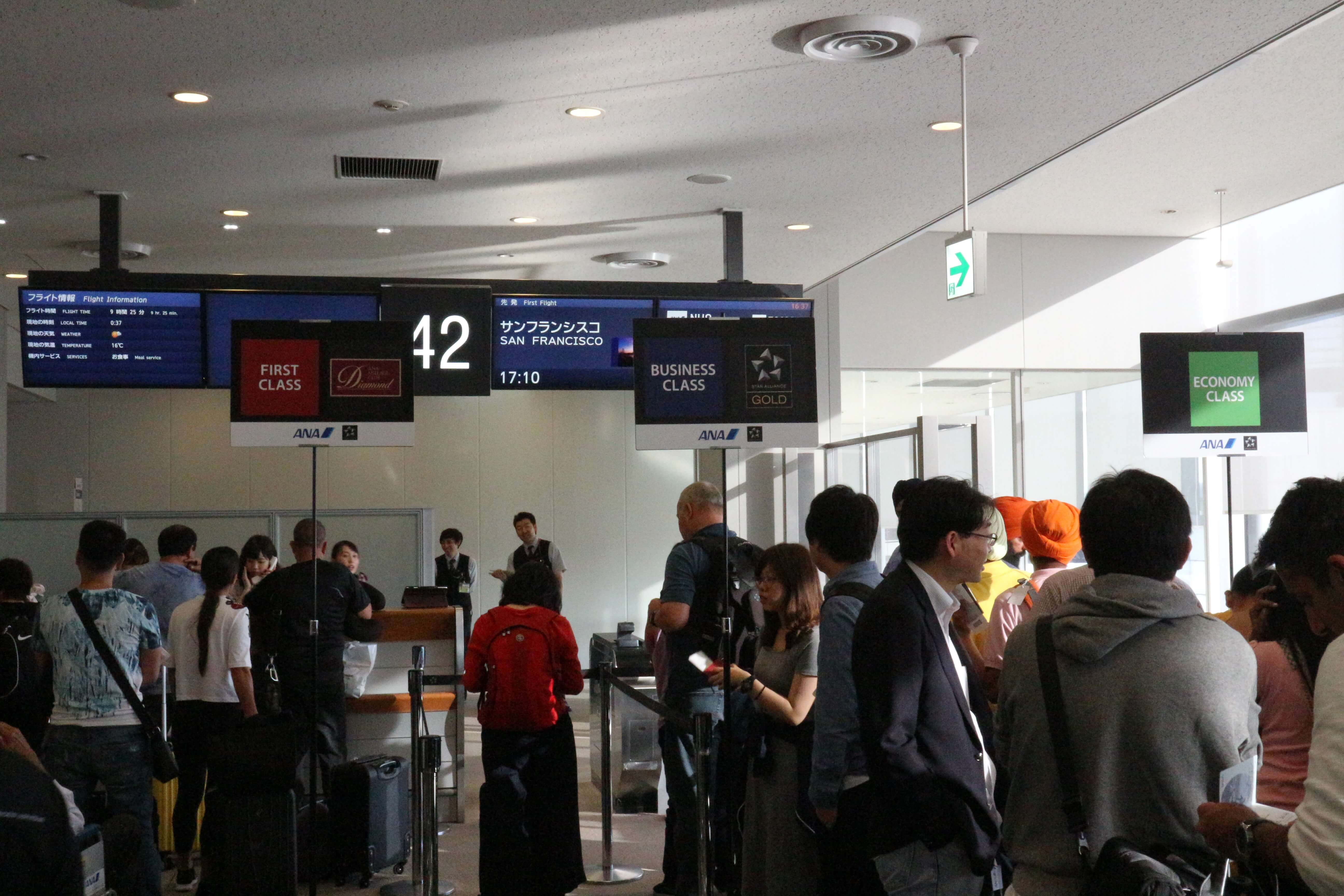 ビジネスクラス搭乗の列はスターアライアンスゴールドの方も並べるためかすでにかなり長くなっていました。さぁいよいよ初めてのANA国際線、ビジネスクラスに搭乗です。