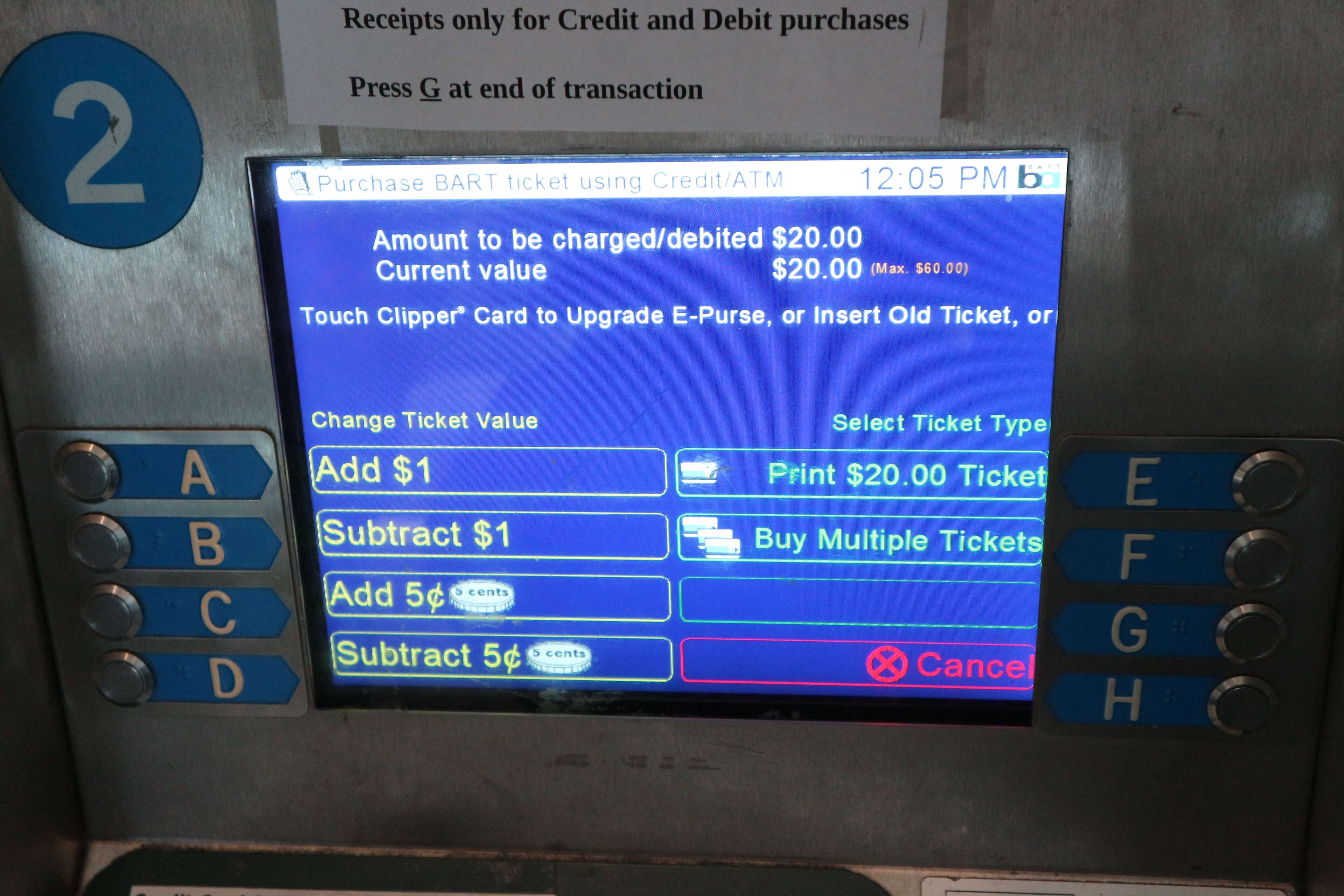 BARTの券売機で切符を買うのですが少し買い方がややこしいです。日本の駅のように路線図や金額別のボタンはありません