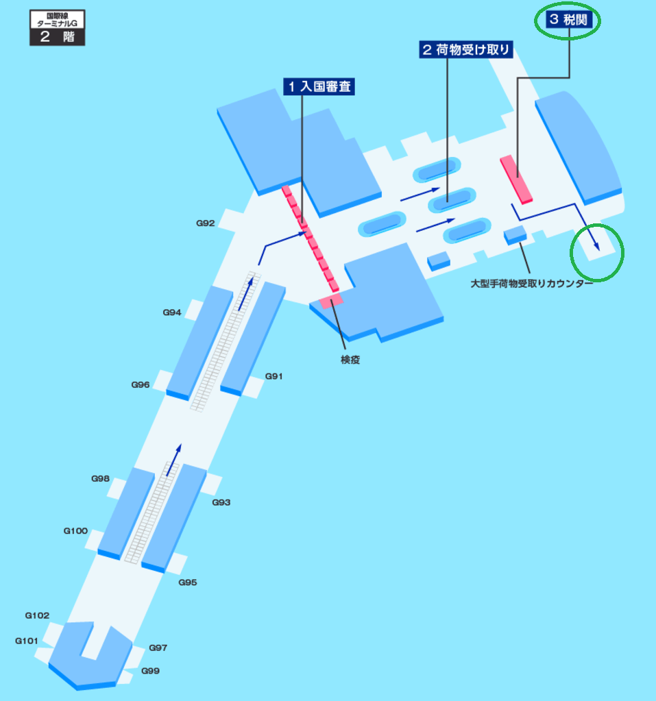 手荷物を受け取りにターンテーブルに行くとすでに多くの手荷物が回っていました。あれだけ入国審査に並ぶと手荷物については優先は意味をなしませんね(笑)。ピックアップして税関へ向かいます。こちらも行列ですが列がはけるのは早いです。