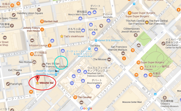 ちなみにここより西側はいわゆるテンダーロイン地区という治安の悪い場所なので特に夜は紛れ込まないようご注意ください。
