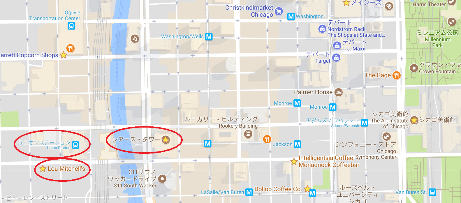 シカゴダウンタウンのユニオンステーションのすぐ近くにあります。有名な高層ビルシアーズタワーからもほど近いです。