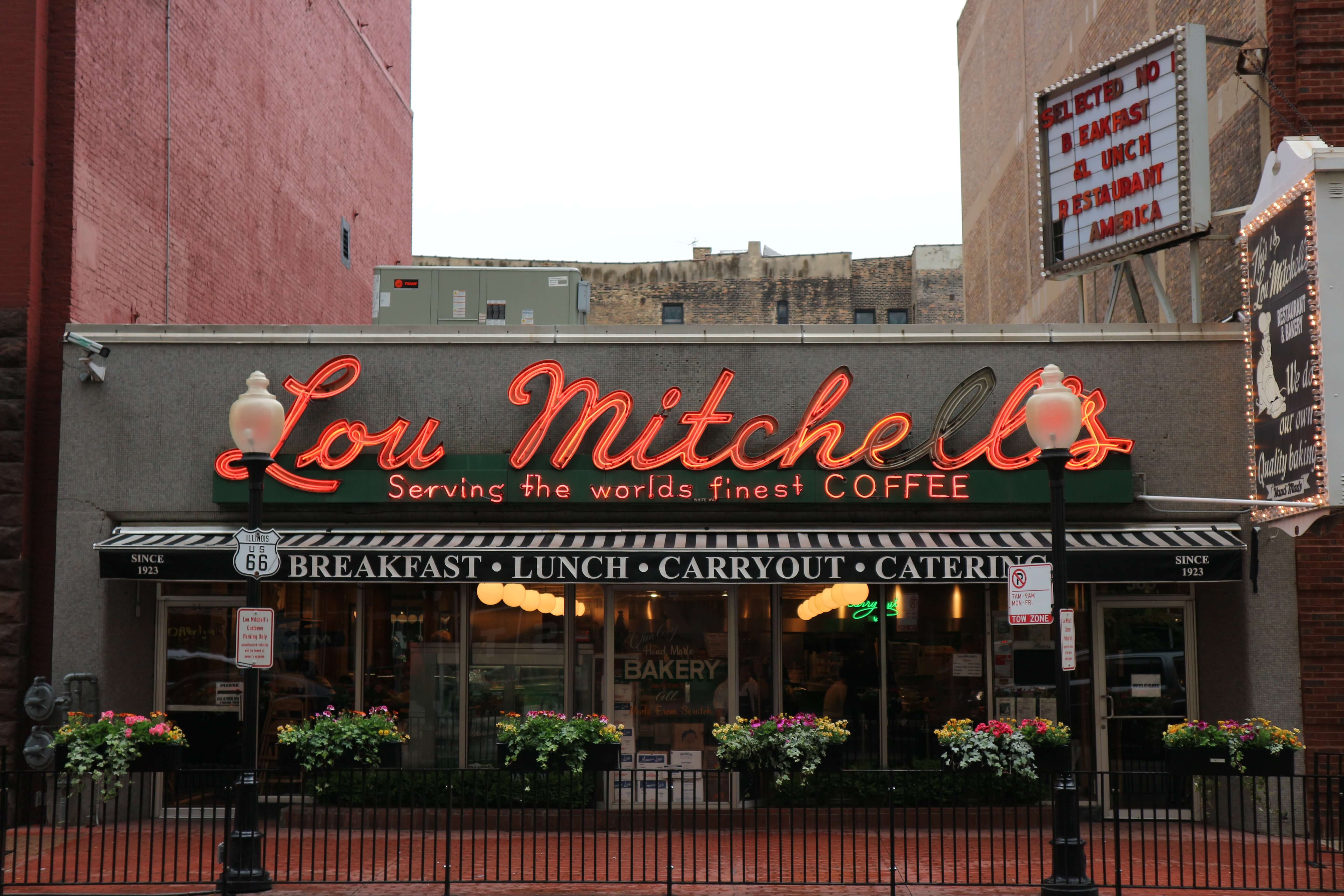 高層ビルが多く近代都市のイメージがあるシカゴですが、実はその一方で、古い建築物や高架鉄道が今なお残っています。シカゴからサンタモニカまでを結ぶ “ルート66”は 1926年に開通しましたが、シカゴにはその時代から残っているレストランがいくつかあります。最も有名と言っていいのが創業1923年という『Lou Mitchell's』(ルー・ミッチェルズ)です。