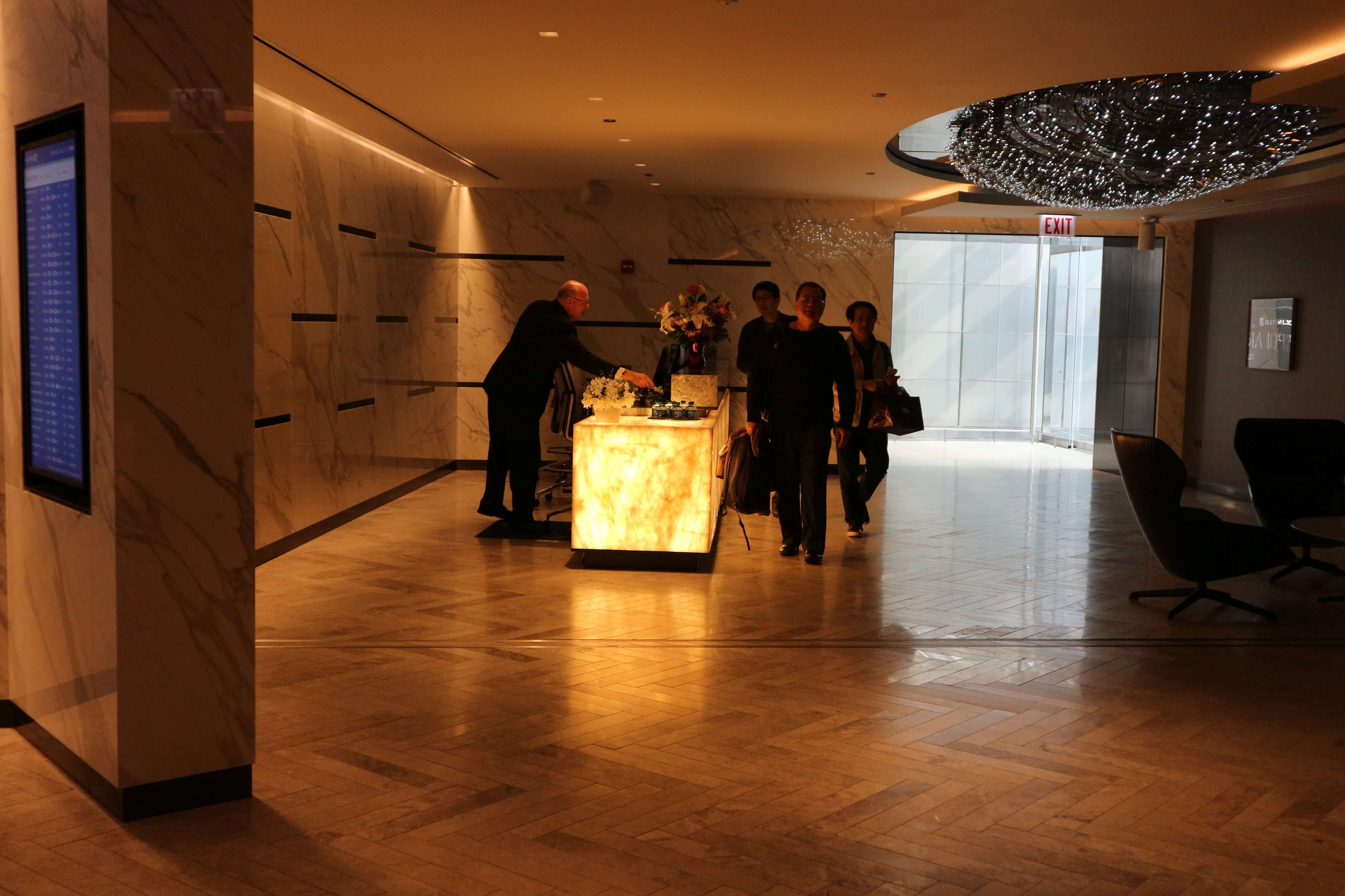 ここでのチェックを終えると引き続き内部の受付で搭乗券のチェックを受けます。こちらのレセプションデスクは大理石でとても高級感があります。またLED照明が星空のイメージです。Polaris=北極星なのでそういうイメージで作られたのでしょうか。