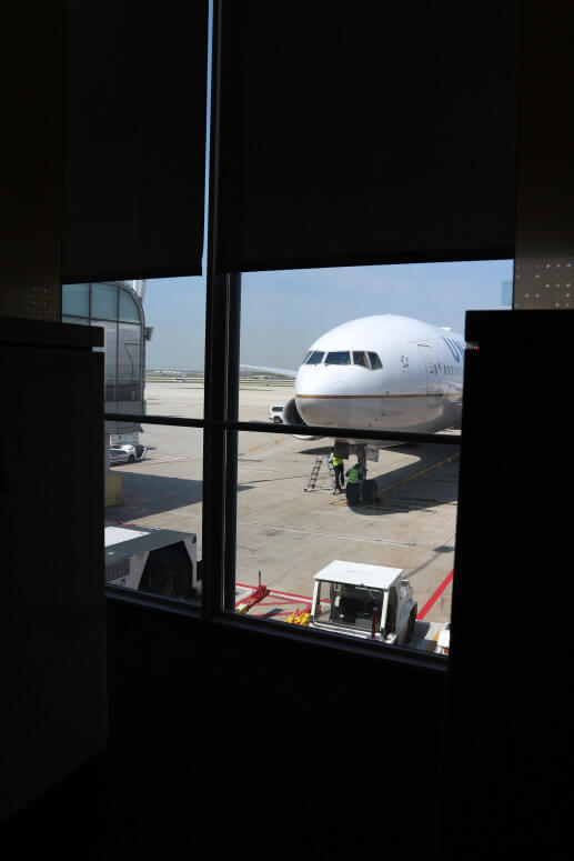 僕もバーカウンターのあたりに座ったのですが注文は取りに来てもらえませんでした(笑)。隣の白人の方は座るとすぐに笑顔で係りの人が寄ってきて注文を聞いてもらえるのですが、やはり人種差別的なものなんでしょうか。デイベッドエリアでの対応のこともあり、やはりユナイテッド航空は好きになれません。今回は飛行機の中で飲み物も堪能する予定だったのでもし注文を聞きに来てもらってもワイン1杯程度にしようと思っていたのと、デイベッドエリアでの対応に続いてかなり腹が立ちましたのでこちらからあえて呼び出して注文しませんでした。