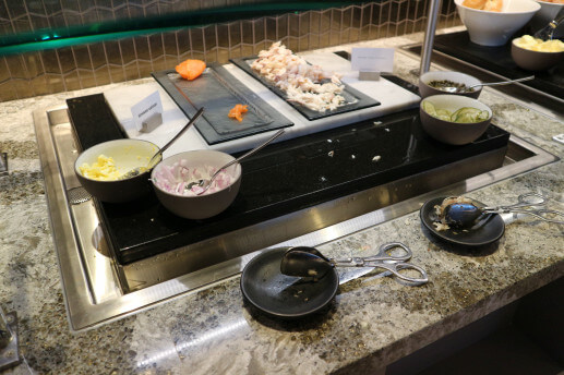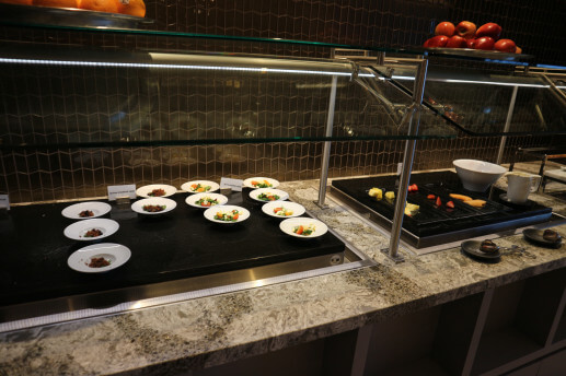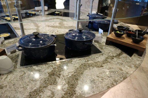 またこちらの特徴として、ダイニングエリアのシートに座ればフルサービスでの料理を楽しめます。羽田空港ANA SUITE LOUNGEのダイニングhのような感じでしょうか。今回はファーストクラスの食事が待っていたので断念しましたが…。ダイニングhのようにヨーロッパ行きなどの深夜便の方には便利なんでしょうね。