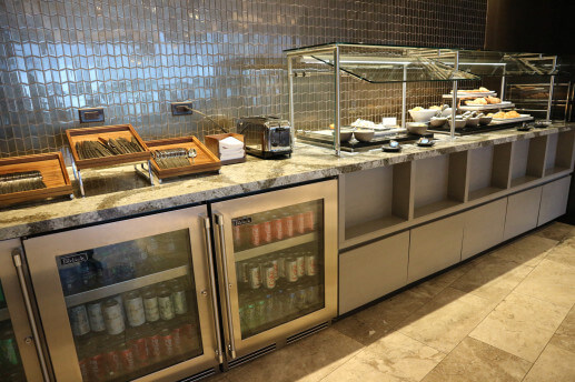 フライト前のお食事サービスとして、受賞歴のあるシェフ、アート・スミス考案のメニュー、温冷お料理各種を豊富に取り揃えたビュッフェ、テーブルサービスをお楽しみいただけます。お食事とともに、特別に厳選されたワイン、プレミアムスピリッツ、クラフトビール、バーテンダーのアダム・シーガーのオリジナル手作りカクテルなど、お好みのお飲み物をどうぞ。