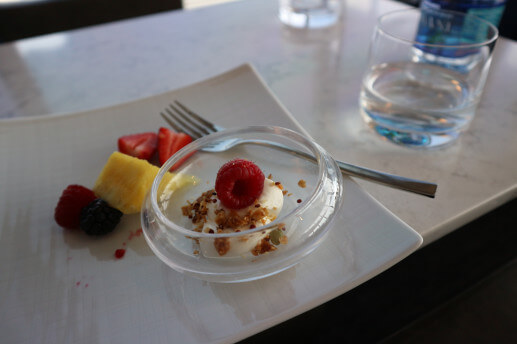 前日にボスと食事した後ひとりでジャズバーで遅くまで飲んだので空腹感がなく朝食を抜いたくらいだったとファーストクラスの食事が待っているのでラウンジではこの程度にしておきました(笑)