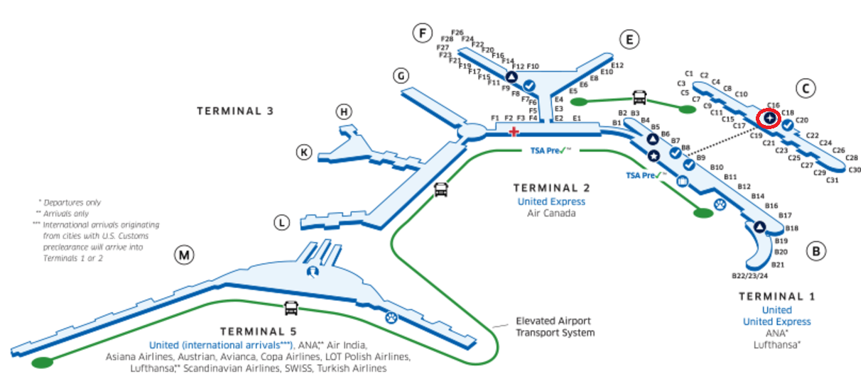 シカゴ オヘア空港のユナイテッドポラリスラウンジの場所は?