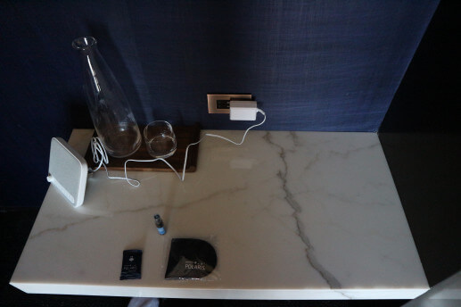 照明、USBと電源コンセント、コートフック、引き出し可能な大理石トレイを備えているようです。