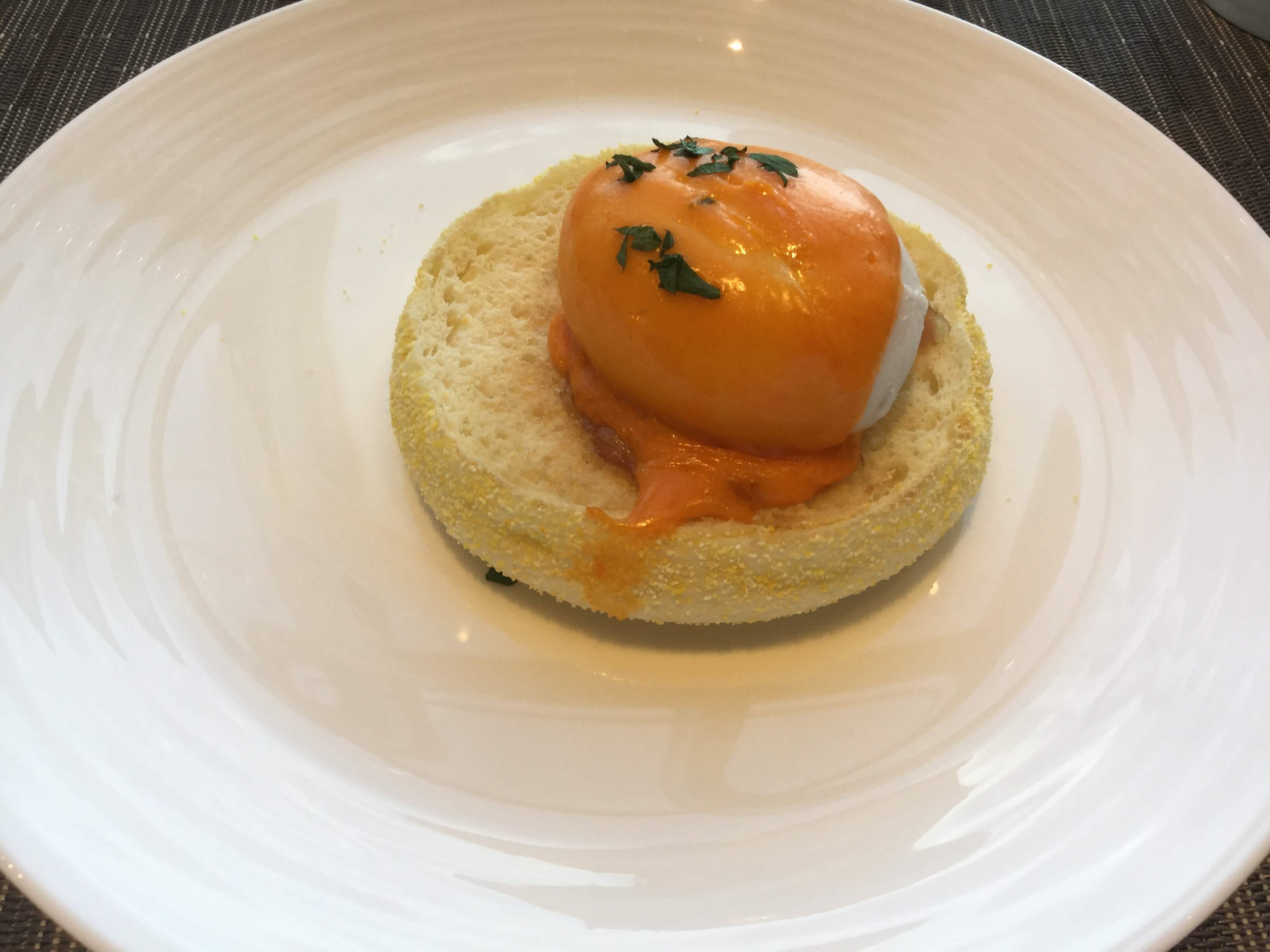席に着くと「コーヒーにするか、紅茶にするか」「卵料理はどれにするか」を尋ねられます。卵料理だけでなく選択肢としてはオムレツ、ポーチドエッグ、目玉焼き、エッグベネディクト、フレンチトースト、パンケーキも注文できるようでした。私はエッグベネディクトを注文しました。10分程で席まで運ばれてきました。