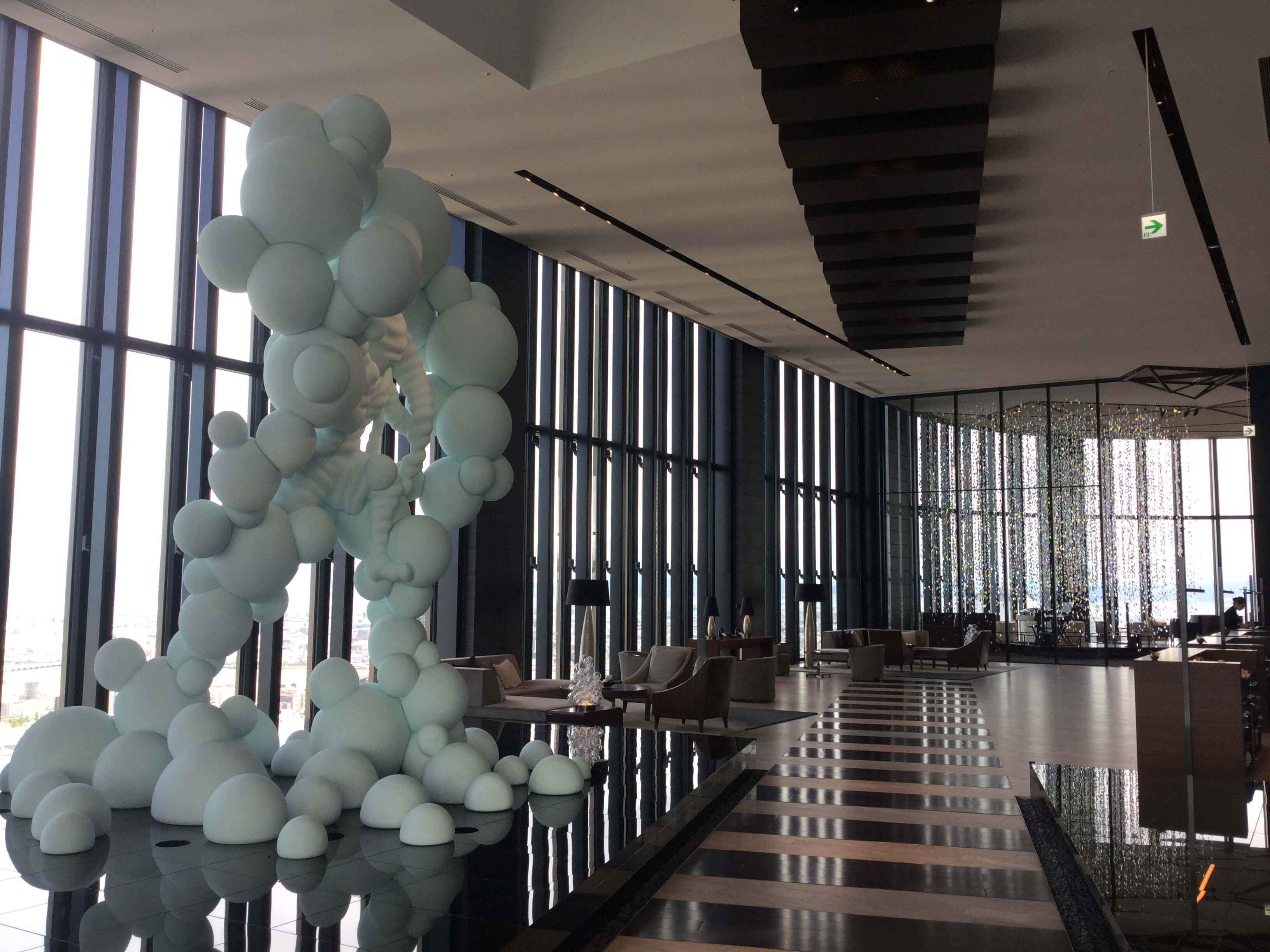 エレベーターを降りると一面の窓から光が降り注ぎ天井も高くとても開放感があります。そして景色もいいです!こういうロビーは高級ホテルに来たとテンションが上がって個人的には好きです。