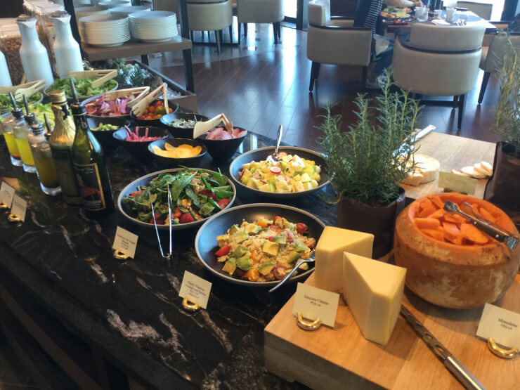 窓側のテーブルにはオーソドックスなラインナップのコールドミールコーナーがあります。