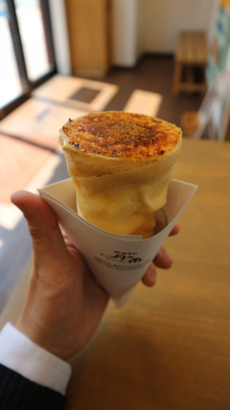 生地はもちもちしていてとても美味しいです。函館は生地がもちもちしたクレープが流行っているのでしょうか。上のブリュレの部分が食べにくく先に食べてしまっちゃいましたので残ったクレープはただのリンゴのクレープになってしまいましたが(笑)。上記アンジェリックヴォヤージュのクレープを食べた後だったので生クリームはイマイチに感じてしまいましたが十分に美味しいものでした!