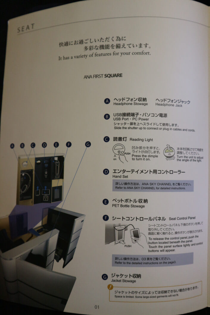 シートに着席するとファーストクラス担当のCAさんとチーフパーサーさんが立て続けに挨拶に来て下さいます。 新聞・飲み物のリクエスト、パジャマに着替えるタイミングなどなどいろいろと希望を細かく聞き取って下さいます。